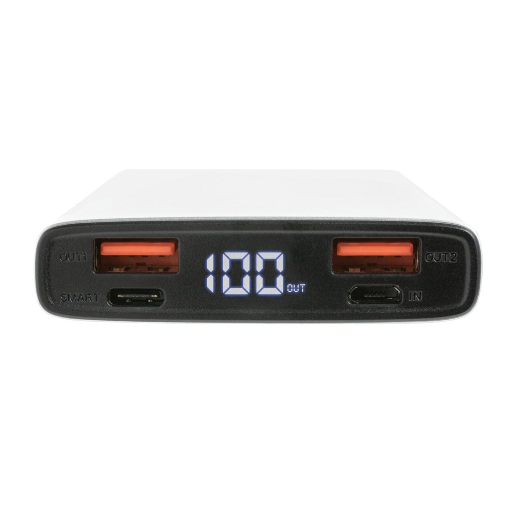 Incarca-ti toate dispozitivele la viteza maxima cu powerbank-ul 10.000 mAh din aluminiu cu incarcare rapida PD 18W si QC 3.0. Fabricat din aluminiu premium si echipat cu o baterie Li-Polymer clasa A de 10.000 mAh, acest powerbank ofera incarcare extrem de rapida pentru toate dispozitivele tale – de la telefoane la tablete. Dispune de port USB-C PD (Power Delivery) si port USB-A QC 3.0, permitand incarcarea simultana a pana la trei dispozitive. Poate reincarca telefonul de pana la cinci ori si sustine incarcarea altor dispozitive in timp ce se incarca el insusi. Indicatorii LED iti arata nivelul de energie ramas. Include cablu micro USB din TPE fara PVC. Este aprobat pentru transport aerian (carry-on). Micro USB Input: 5V/2A; Type-C Input: 5V/3A, 9V/2A, 12V/1.5A; USB Output: 5V/2.1A; QC 3.0 Output: 5V/3A, 9V/2A, 12V/1.5A; Type-C Output: 5V/3A, 9V/2A, 12V/1.5A (18W max, PD 3.0).