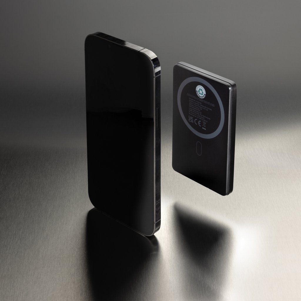 Elegant, subtire si performant, Orion este powerbank-ul magnetic de 5.000 mAh care imbina perfect designul premium din aluminiu reciclat certificat RCS cu functionalitatea moderna. Ofera incarcare wireless magnetica de 5W si port USB-C bidirectional pentru incarcare rapida si versatilitate maxima. Carcasa este realizata din aliaj de aluminiu si ABS reciclat, cu un continut total reciclat de 23% din greutatea produsului, asigurand o amprenta ecologica redusa. Bateria Li-Polymer clasa A garanteaza performanta durabila, iar indicatorii LED iti arata nivelul de energie ramas. Include cablu TPE reciclat certificat RCS, complet PVC free. Ambalat in cutie FSC® mix. Input Type-C: 5V/2.4A; Output USB-C: 5V/2A; Wireless Output: 5V/1A (5W).