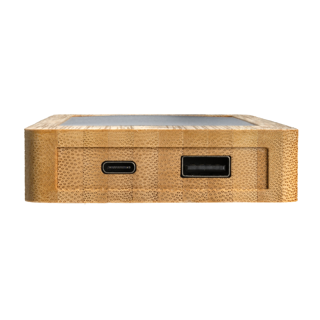 Incarca-ti dispozitivele oriunde te afli cu Sunwick, powerbank-ul solar 10.000 mAh realizat din bambus certificat FSC® 100%. Cu un design natural si tehnologie moderna, Sunwick foloseste panouri solare monocristaline premium cu o rata de conversie de 19%, oferind energie verde si eficienta. Bateria Li-Polymer clasa A de 10.000 mAh asigura o incarcare sigura si constanta, iar puterea totala de 10W permite incarcarea a doua dispozitive simultan prin porturile USB-A si USB-C. Include cablu din TPE reciclat certificat RCS, complet PVC free. Ambalat in cutie FSC® mix, ideala pentru un cadou eco si functional. Incarcare solara: 5V/180mA; Input Type-C: 5V/2A; Output USB-A: 5V/2A; Output Type-C: 5V/2A; Total output: 10W.