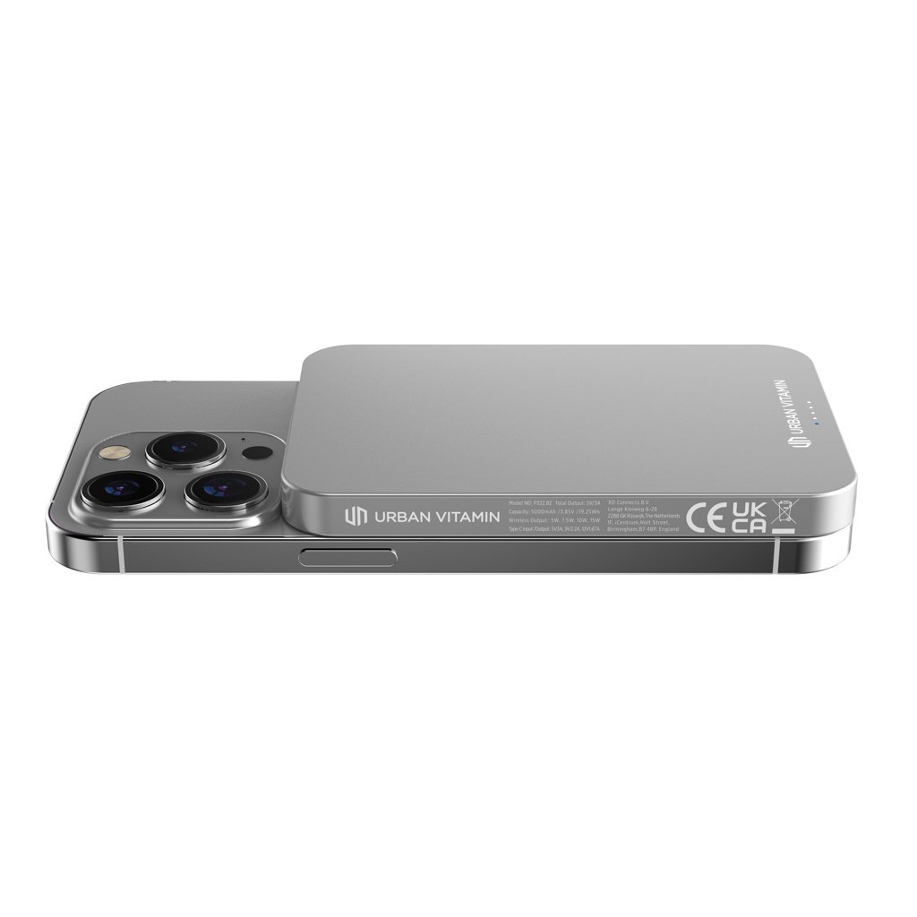 Urban Vitamin Richmond este powerbank-ul magnetic premium creat pentru cei care apreciaza performanta, designul elegant si sustenabilitatea. Cu o capacitate de 5.000 mAh si tehnologie magnetica integrata, se ataseaza perfect pe iPhone 12 si modelele ulterioare, precum si pe telefoanele Android compatibile, pentru o experienta de incarcare wireless rapida de 15W.