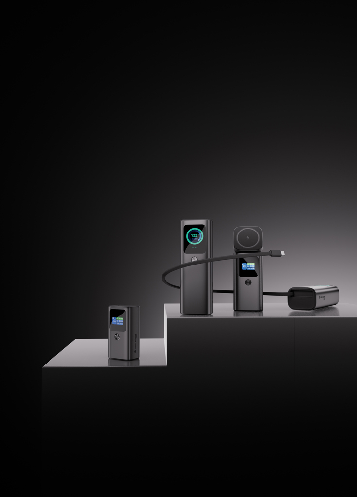 Stanford este echipat cu doua porturi USB-C si un port USB-A, oferind flexibilitate maxima pentru toate dispozitivele tale. Include un cablu USB-C retractabil de 70 cm, integrat direct in design, cu suport pentru incarcare rapida de pana la 100W — eliminand complet nevoia de cabluri suplimentare. Ecranul color TFT de inalta rezolutie afiseaza in timp real informatii despre viteza de incarcare, nivelul bateriei si starea dispozitivelor conectate.