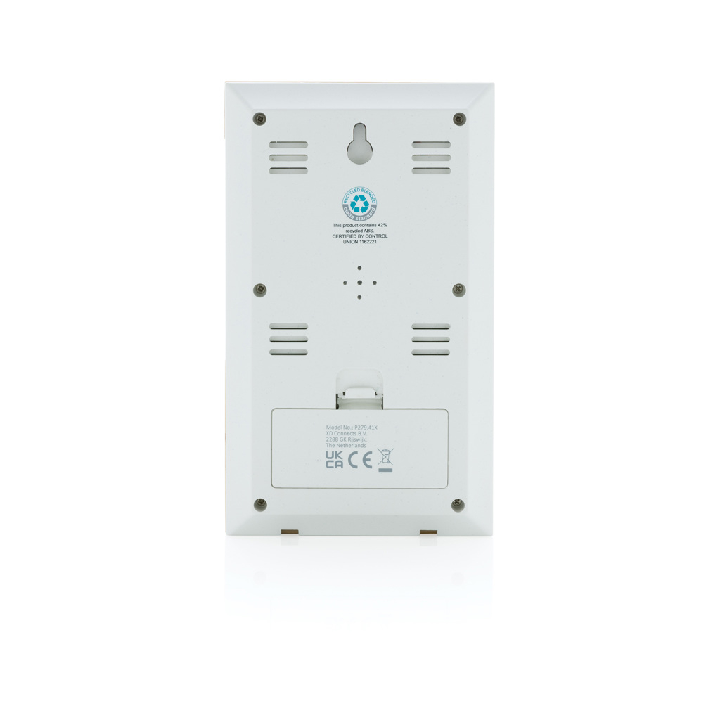 Statie meteo Utah din plastic reciclat RCS si bambus FSC®, Vinga este un accesoriu modern si prietenos cu mediul, ideal pentru birou sau locuinta. Fabricata din 42% plastic ABS reciclat certificat RCS si bambus FSC® 100%, combina tehnologia practica cu designul natural pentru un stil de viata sustenabil.