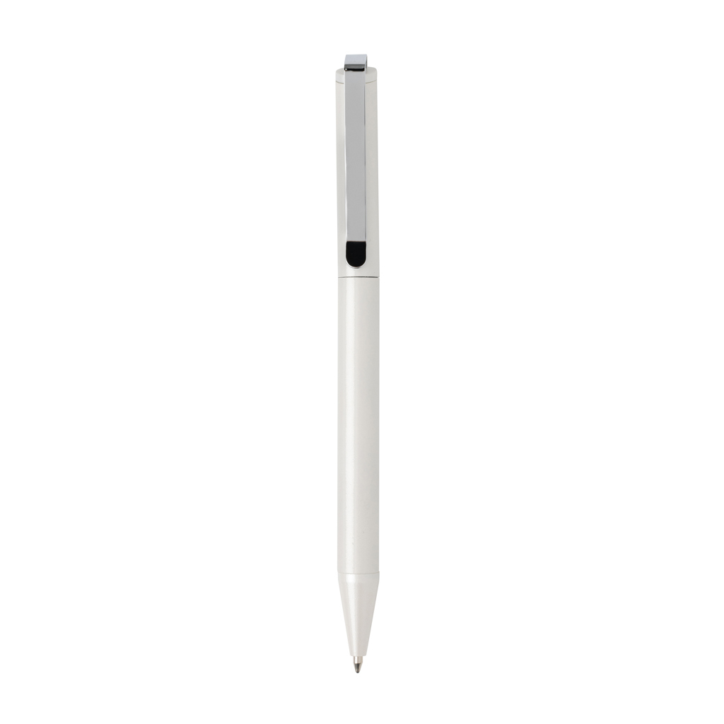 Pix Xavi din aluminiu reciclat certificat RCS imbina designul modern cu responsabilitatea ecologica, fiind alegerea ideala pentru cei care apreciaza instrumentele de scris premium si sustenabile. Fabricat din aliaj de aluminiu reciclat certificat RCS, acest pix contribuie la reducerea impactului asupra mediului, oferind in acelasi timp un aspect elegant si profesional.