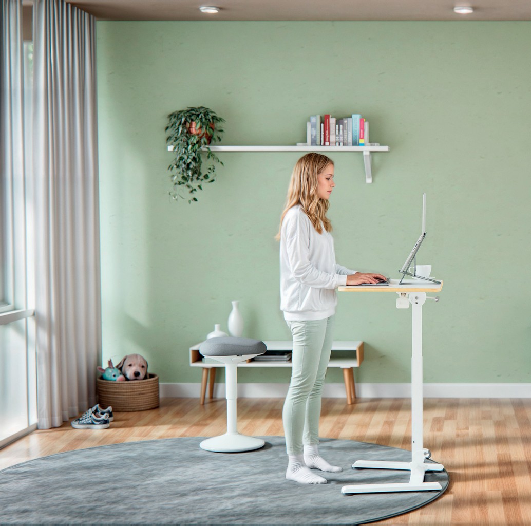 Treci fără efort între șezut și stat în picioare cu ajustarea pneumatică a înălțimii (74–109 cm) pentru a evita durerile și a stimula mișcarea musculară, îmbunătățind astfel starea de bine.