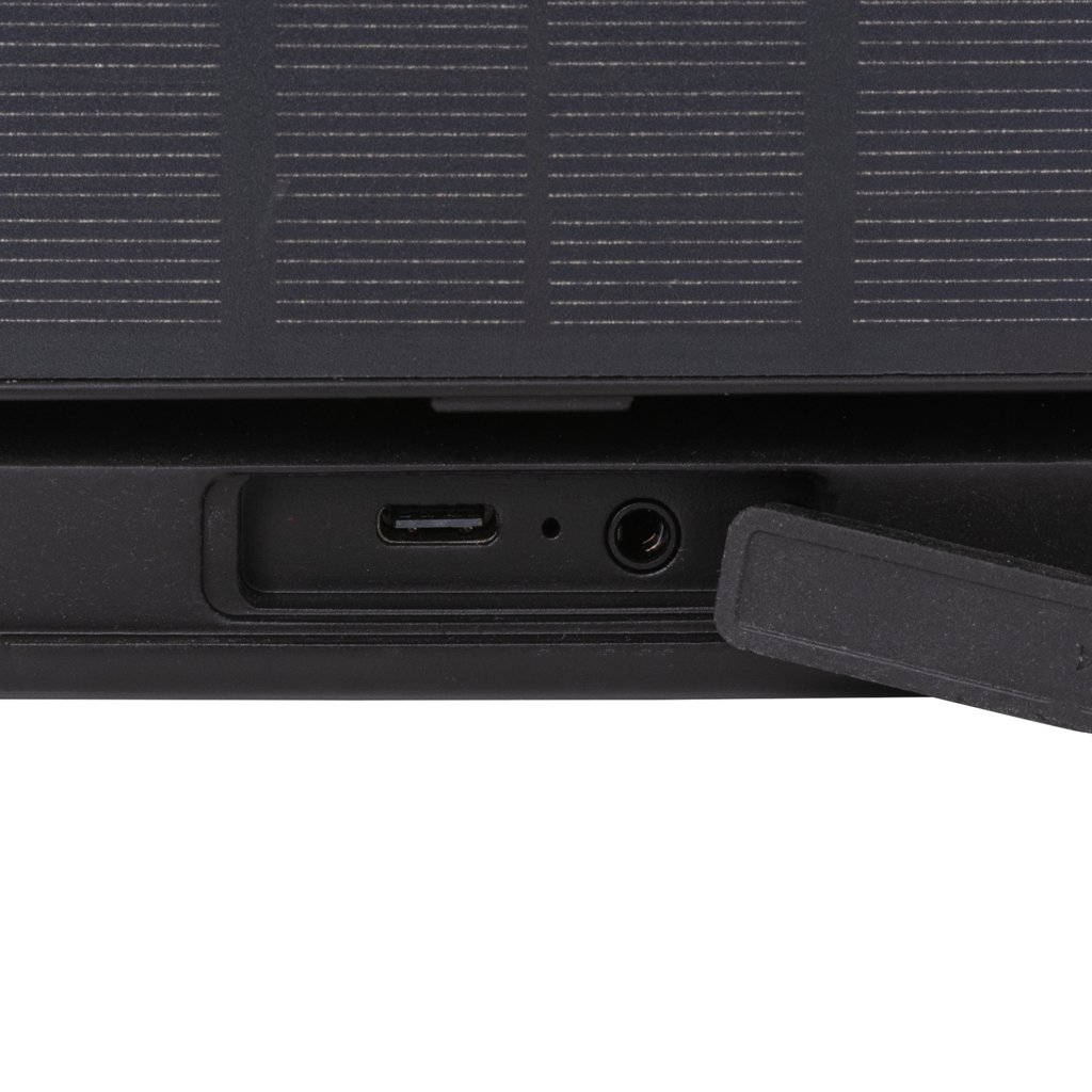 Ia cu tine energia soarelui si bucura-te de muzica oriunde cu boxa wireless solara Skywave RCS, realizata din ABS reciclat certificat RCS. Cu un continut reciclat total de 16%, aceasta boxa ofera putere de 12W si un sunet clar si puternic. Panoul solar integrat din celule monocristaline de inalta calitate are o eficienta de conversie de 19%, permitand incarcarea prin energie solara (5V/200–300mA), in functie de conditii. Dispune de baterie 2000 mAh pentru pana la 8 ore de redare si albastrutooth 5.3 pentru conexiune fluida pana la 10 metri. Echipata cu microfon si functie de preluare apeluri, precum si cu lampa LED integrata pentru utilizare pe timp de noapte. Rezistenta la apa IPX5, ideala pentru activitati in aer liber. Input: USB-C; Timp incarcare: 3H; PVC free. Livrata in ambalaj FSC® mix si insotita de cablu de incarcare TPE reciclat certificat RCS.
