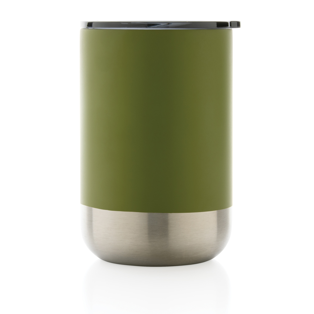 Cu izolatie metalica si vacuum, pastreaza bauturile calde pana la 3 ore si reci pana la 6 ore. Designul cu accent din inox la baza il transforma intr-un accesoriu elegant, iar capacului culisant antiscurgere ofera confort si siguranta la utilizare. Produs BPA free, livrat in ambalaj kraft certificat FSC®. Capacitate 360 ml.