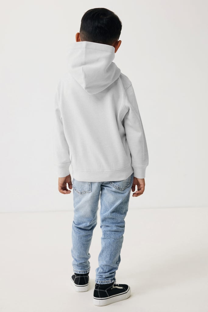 Confort, stil si sustenabilitate – toate se regasesc in hanoracul pentru copii IQONIQ Yengo, realizat din 100% bumbac (70% organic si 30% reciclat), cu o densitate premium de 280 G/M². Acest hanorac tip brushed sweat are o croiala moderna si este prevazut cu buzunare laterale discrete, gluga dubla si mansete cu finisaj 1x1 rib pentru o potrivire perfecta. Interiorul moale, din fleece periat, ofera caldura si confort in orice sezon. Prin tehnologia AWARE™, fiecare hanorac este complet trasabil si verificat prin blockchain, garantand autenticitatea materialelor reciclate si organice. Scanand codul QR, poti accesa pasaportul digital al produsului si informatii despre amprenta sa ecologica. Certificat OEKO-TEX® STANDARD 100 Centexbel pentru siguranta pielii copiilor. 2% din veniturile obtinute sunt donate catre Water.org. Datorita firelor reciclate, pot aparea usoare variatii de culoare – o dovada a autenticitatii materialelor naturale.