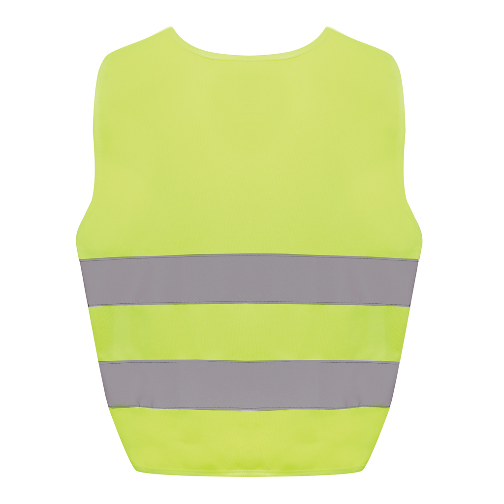Vesta ofera spatiu pentru personalizare atat pe fata, cat si pe spate, fiind ideala pentru scoli, gradinite sau activitati in aer liber. Este testata riguros si conforma cu EN 17353:2020 Tip AB3 si Regulamentul (UE) 2016/425 privind echipamentele individuale de protectie din Categoria II. Fabricata cu 55% continut reciclat (din greutatea totala a produsului), aceasta vesta asigura o trasabilitate completa a materialelor reciclate prin certificarea GRS (Global Recycled Standard).
