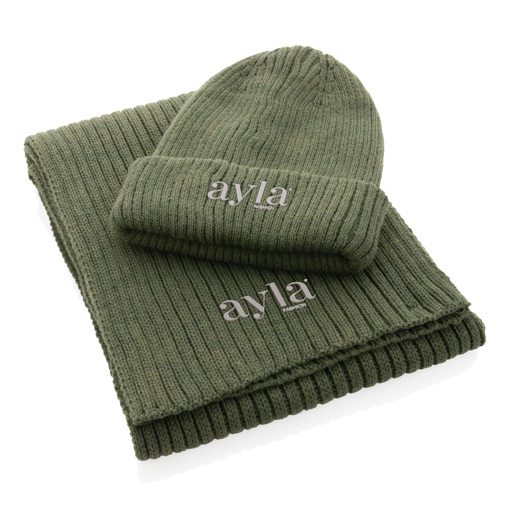 Realizat din fibre Polylana® – o alternativa ecologica la acrilul conventional – fularul reduce consumul de energie si apa in procesul de productie, oferind in acelasi timp o textura moale si placuta la atingere. Prin incorporarea trasorului AWARE™, este garantata utilizarea materialelor reciclate autentice si trasabilitatea intregului lant de productie. Parte din colectia Impact, 2% din incasarile fiecarui produs sunt donate catre Water.org, sustinand accesul global la apa curata.