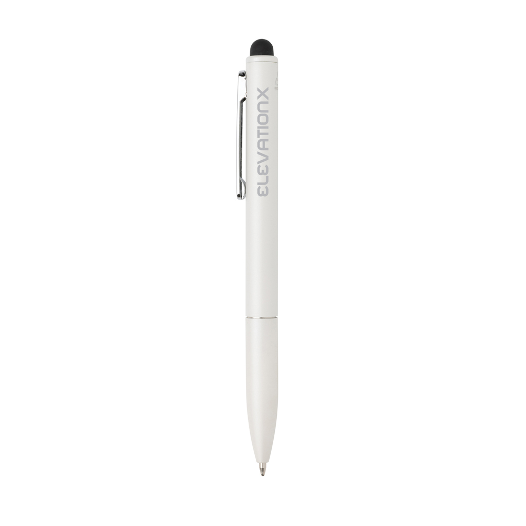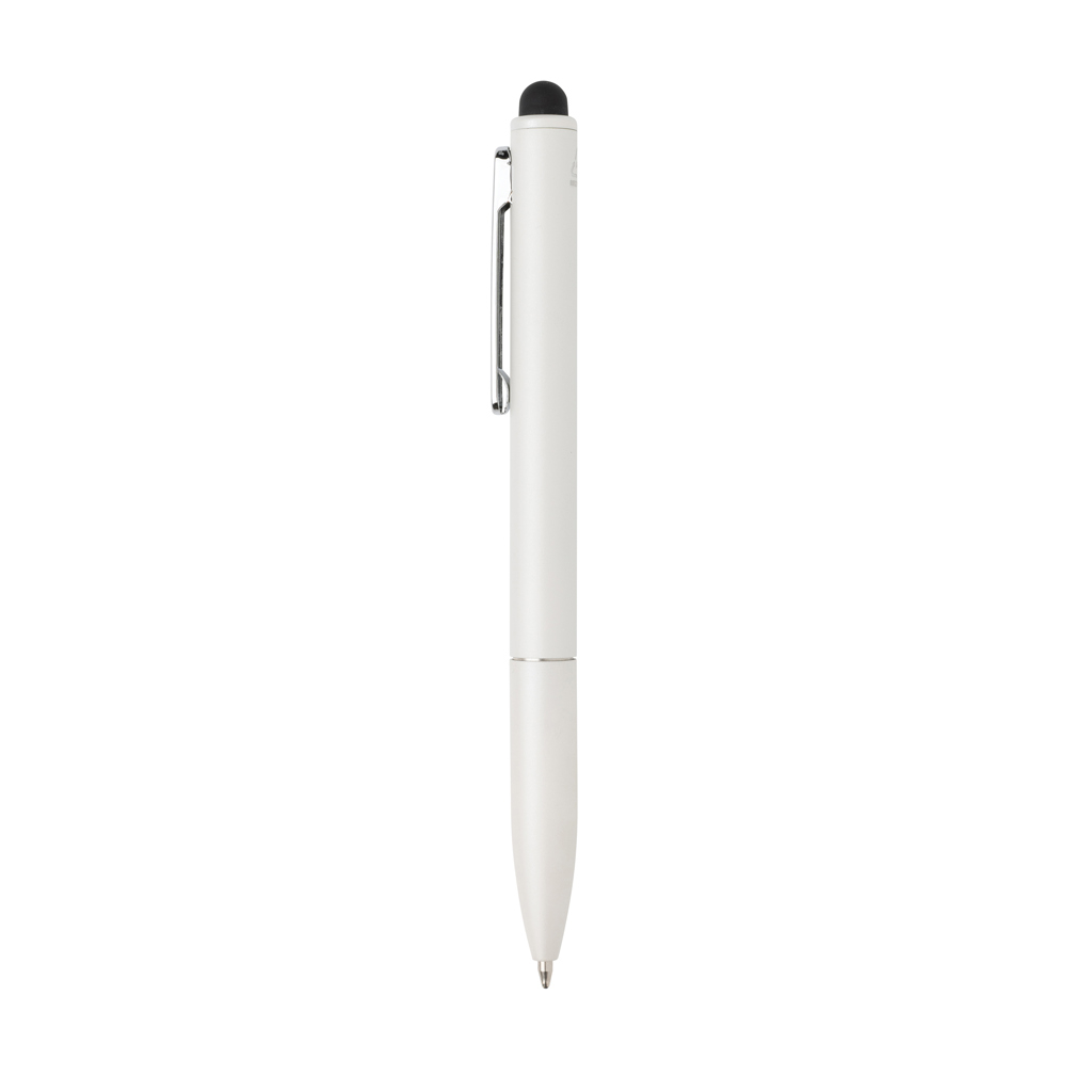 Pix Kymi din aluminiu reciclat certificat RCS cu stylus imbina eleganta moderna cu functionalitatea practica, fiind alegerea ideala pentru cei care doresc un instrument de scris premium si sustenabil. Fabricat din aliaj de aluminiu reciclat certificat RCS, acest pix contribuie la reducerea impactului asupra mediului, fara a face compromisuri la stil sau performanta.