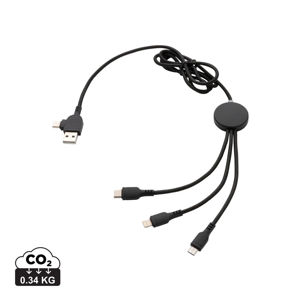 Adauga un plus de stil incarcarii zilnice cu cablu 6-in-1 cu logo iluminat – un accesoriu modern si versatil, creat pentru performanta si impact vizual. Fabricat din nailon impletit premium, acest cablu dispune de cinci conectori diferiti: USB-C si USB-A pentru intrare si USB-C, iOS si Micro USB pentru iesire, oferind compatibilitate deplina cu toate dispozitivele moderne, inclusiv laptopurile si telefoanele de ultima generatie. Carcasa din ABS rezistent permite gravarea unui logo personalizat care se lumineaza in timpul utilizarii – o nota eleganta si unica pentru branduri sau utilizatori pasionati de design. Cu o lungime de 120 cm si o capacitate de incarcare de pana la 5V/2A, acest cablu este perfect pentru incarcarea si conectarea dispozitivelor tale oriunde. 100% PVC free si realizat din TPE ecologic, este combinatia ideala intre functionalitate, sustenabilitate si estetica moderna.