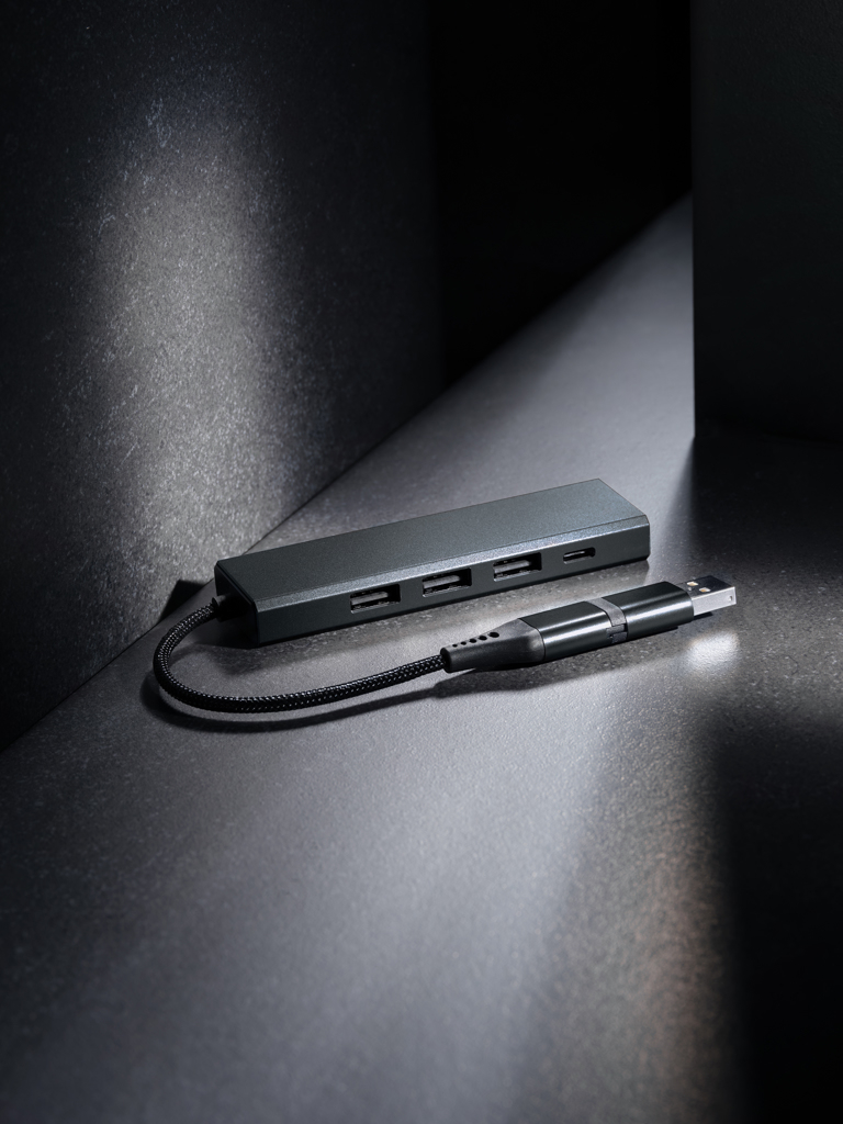 Descopera hub-ul USB Terra, realizat din aluminiu reciclat certificat RCS – solutia perfecta pentru extinderea conexiunilor tale intr-un mod sustenabil. Acest hub elegant ofera 3 porturi USB-A 2.0 si 1 port USB-C, fiind ideal pentru laptopuri sau PC-uri moderne. Datorita conectorului dual (USB-A si USB-C), il poti folosi cu o gama larga de dispozitive. Fabricat din aluminiu, ABS, TPE si PET reciclate, cu un continut total reciclat de 75% din greutatea produsului. Include cablu integrat de 10 cm din TPE/PET reciclate, certificat RCS. Ambalajul este FSC® mix, iar produsul este 100% PVC free.