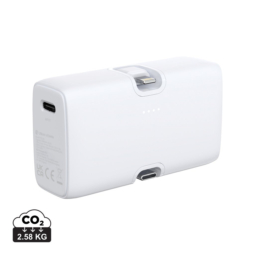 Compact si puternic, powerbank-ul Los Angeles iti ofera incarcare rapida 20W PD oriunde te afli. Cu o capacitate de 5000 mAh, acest model usor incarca telefonul pana la o data complet si suporta incarcare simultana pentru 2 dispozitive. Datorita porturilor integrate – Lightning (pentru iPhone 14 si modelele anterioare) si USB-C – nu mai ai nevoie de cabluri suplimentare. Toate iesirile ofera incarcare ultra-rapida, aducand bateria telefonului tau la 50% in mai putin de 30 de minute. Include port USB-C pentru reincarcarea powerbank-ului, indicator LED pentru nivelul de energie si suport integrat pentru a-ti sustine telefonul in timpul vizionarii. Fabricat din ABS si policarbonat reciclat certificat RCS, cu continut reciclat total de 24%, fara PVC si cu ambalaj redus in plastic. Aprobat pentru bagajul de mana.
