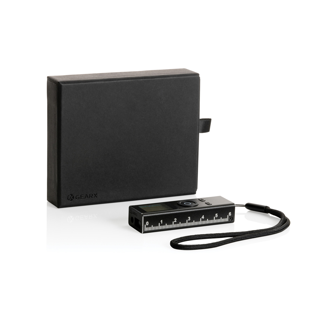 Telemetru laser profesional Gear X cu raza de masurare de 30 metri, realizat din aluminiu reciclat certificat RCS (Recycled Claim Standard). Produsul contine 22% materiale reciclate raportat la greutatea totala, iar certificarea RCS garanteaza trasabilitatea intregului lant de productie.