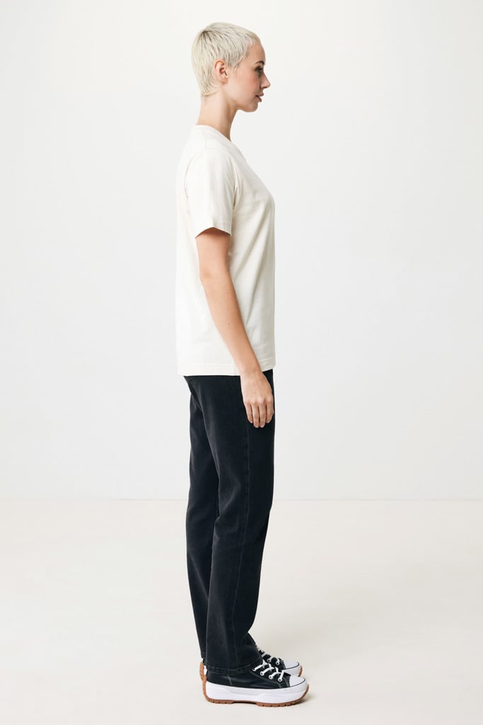IQONIQ Kakadu este un tricou unisex cu croiala relaxata, confectionat din 100% bumbac – o combinatie echilibrata de 50% bumbac reciclat si 50% bumbac organic, cu o greutate de 180 G/M². Realizat din jerseu single de inalta calitate, ofera confort natural, respirabilitate si o textura moale la atingere. Designul cu decolteu rotund (crew neck) si finisaj 1x1 rib asigura o potrivire lejera si un aspect casual, perfect pentru tinutele de zi cu zi. Datorita croielii relaxate, este ideal atat pentru activitati casual, cat si pentru un look minimalist, gender-neutral. Certificarea AWARE™ garanteaza trasabilitatea reala a materialelor reciclate si organice, folosind tehnologie blockchain si tracer fizic. Scanand codul QR, poti accesa pasaportul digital al produsului, care prezinta impactul sau ecologic complet. Tricoul este certificat OEKO-TEX® STANDARD 100 Centexbel si 2% din incasari sunt donate catre Water.org, sustinand proiecte pentru accesul global la apa curata.