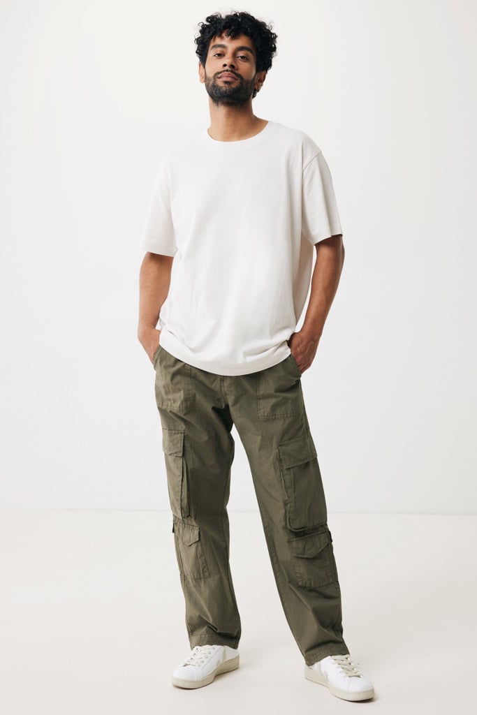 IQONIQ Kakadu este un tricou unisex cu croiala relaxata, confectionat din 100% bumbac – o combinatie echilibrata de 50% bumbac reciclat si 50% bumbac organic, cu o greutate de 180 G/M². Realizat din jerseu single de inalta calitate, ofera confort natural, respirabilitate si o textura moale la atingere. Designul cu decolteu rotund (crew neck) si finisaj 1x1 rib asigura o potrivire lejera si un aspect casual, perfect pentru tinutele de zi cu zi. Datorita croielii relaxate, este ideal atat pentru activitati casual, cat si pentru un look minimalist, gender-neutral. Certificarea AWARE™ garanteaza trasabilitatea reala a materialelor reciclate si organice, folosind tehnologie blockchain si tracer fizic. Scanand codul QR, poti accesa pasaportul digital al produsului, care prezinta impactul sau ecologic complet. Tricoul este certificat OEKO-TEX® STANDARD 100 Centexbel si 2% din incasari sunt donate catre Water.org, sustinand proiecte pentru accesul global la apa curata.