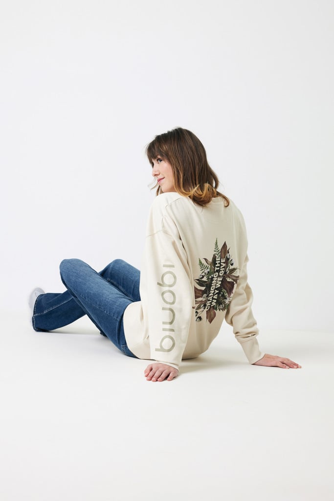 Descopera confortul suprem si stilul relaxat cu bluza unisex IQONIQ Kruger, realizata din 100% bumbac (50% reciclat si 50% organic), cu o densitate de 340 G/M². Croiala relaxata cu umeri cazuti, maneci largi si guler rotund ofera o tinuta moderna si lejera, potrivita atat pentru femei, cat si pentru barbati. Detaliile cu finisaj 2x2 rib la mansete si tiv adauga rezistenta si un plus de stil. Interiorul moale din fleece periat garanteaza confort termic si o senzatie placuta pe piele. Realizata cu ajutorul tehnologiei AWARE™, bluza Kruger este complet trasabila si verificata prin blockchain, garantand originea materialelor reciclate si organice. Scanand codul QR, poti accesa pasaportul digital al produsului si informatiile despre impactul sau ecologic. Certificata OEKO-TEX® STANDARD 100 Centexbel si creata cu respect pentru planeta, fiecare bluza contribuie la sustenabilitate prin donarea a 2% din incasari catre Water.org. Datorita firelor reciclate, pot aparea usoare variatii de culoare, oferind un aspect natural si autentic.