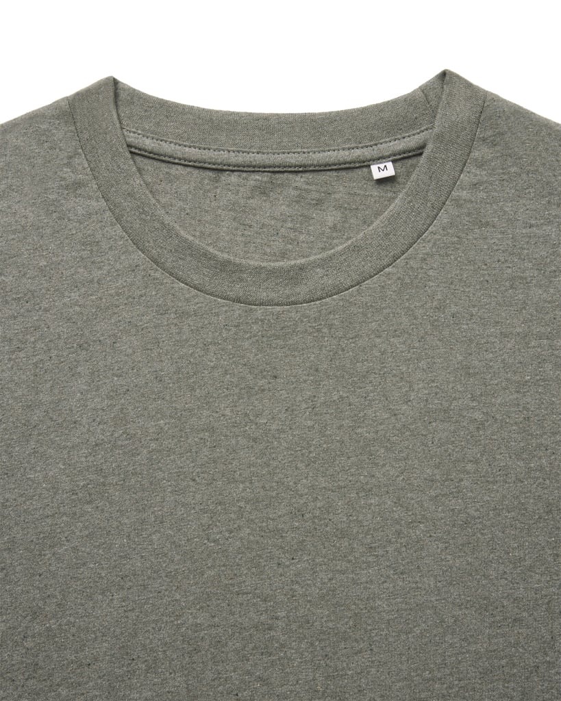 IQONIQ Manuel este un tricou unisex cu croiala clasica, realizat din 100% bumbac – o combinatie sustenabila de 50% bumbac reciclat si 50% bumbac organic, cu o greutate de 180 G/M². Este aceeasi piesa de baza ca modelul IQONIQ Bryce, insa cu o diferenta importanta: procesul de vopsire a fost eliminat. Prin amestecarea bumbacului reciclat in culoarea sa naturala cu bumbacul organic virgin, se obtine un efect melanj subtil, cu o textura autentica si un aspect natural, nevopsit. Aceasta abordare sustenabila reduce consumul de apa si substante chimice, pastrand in acelasi timp un stil minimalist si versatil. Produsul este certificat AWARE™, asigurand trasabilitatea reala a materialelor reciclate si organice prin tehnologie blockchain si tracer fizic. Scanand codul QR, poti accesa pasaportul digital al produsului, cu informatii detaliate despre impactul sau ecologic. Tricoul este certificat OEKO-TEX® STANDARD 100 Centexbel si contribuie la sustenabilitate prin donarea a 2% din incasari catre Water.org.