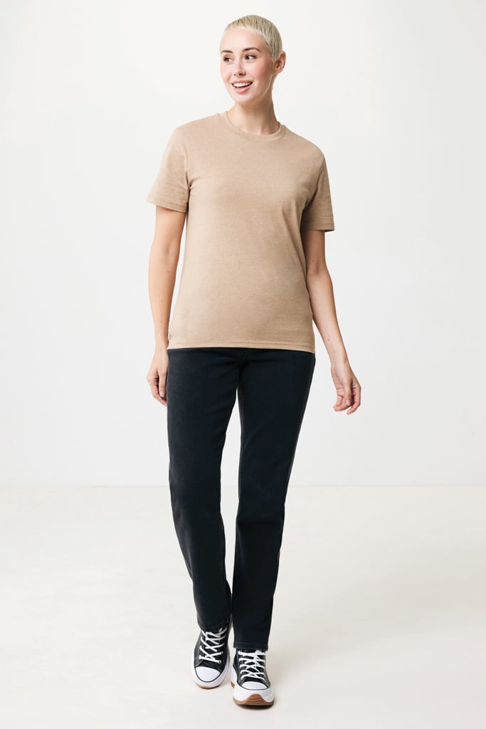 IQONIQ Manuel este un tricou unisex cu croiala clasica, realizat din 100% bumbac – o combinatie sustenabila de 50% bumbac reciclat si 50% bumbac organic, cu o greutate de 180 G/M². Este aceeasi piesa de baza ca modelul IQONIQ Bryce, insa cu o diferenta importanta: procesul de vopsire a fost eliminat. Prin amestecarea bumbacului reciclat in culoarea sa naturala cu bumbacul organic virgin, se obtine un efect melanj subtil, cu o textura autentica si un aspect natural, nevopsit. Aceasta abordare sustenabila reduce consumul de apa si substante chimice, pastrand in acelasi timp un stil minimalist si versatil. Produsul este certificat AWARE™, asigurand trasabilitatea reala a materialelor reciclate si organice prin tehnologie blockchain si tracer fizic. Scanand codul QR, poti accesa pasaportul digital al produsului, cu informatii detaliate despre impactul sau ecologic. Tricoul este certificat OEKO-TEX® STANDARD 100 Centexbel si contribuie la sustenabilitate prin donarea a 2% din incasari catre Water.org.
