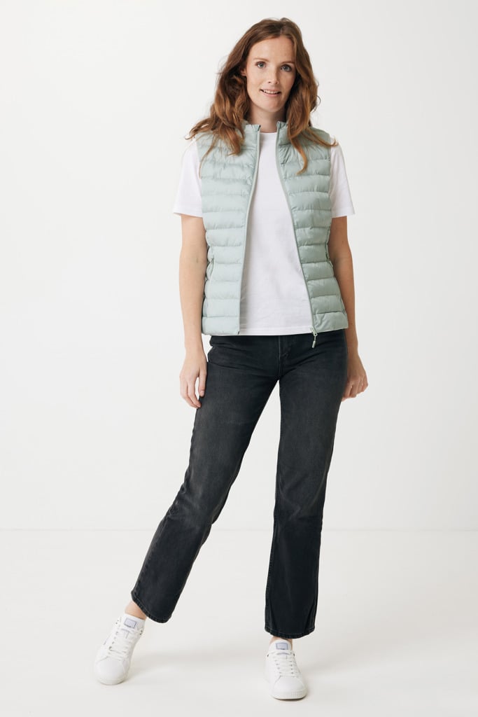 IQONIQ Meru este o vesta pentru femei cu croiala medie, realizata din 100% poliester reciclat post-consum. Materialul usor (70 G/M²) este complet matlasat si umplut cu fibre reciclate tip perla, oferind confort termic excelent si un aspect elegant, perfect pentru stratificare in orice anotimp.