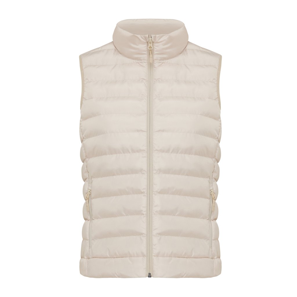 IQONIQ Meru este o vesta pentru femei cu croiala medie, realizata din 100% poliester reciclat post-consum. Materialul usor (70 G/M²) este complet matlasat si umplut cu fibre reciclate tip perla, oferind confort termic excelent si un aspect elegant, perfect pentru stratificare in orice anotimp.