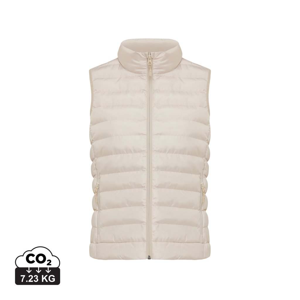 IQONIQ Meru este o vesta pentru femei cu croiala medie, realizata din 100% poliester reciclat post-consum. Materialul usor (70 G/M²) este complet matlasat si umplut cu fibre reciclate tip perla, oferind confort termic excelent si un aspect elegant, perfect pentru stratificare in orice anotimp.