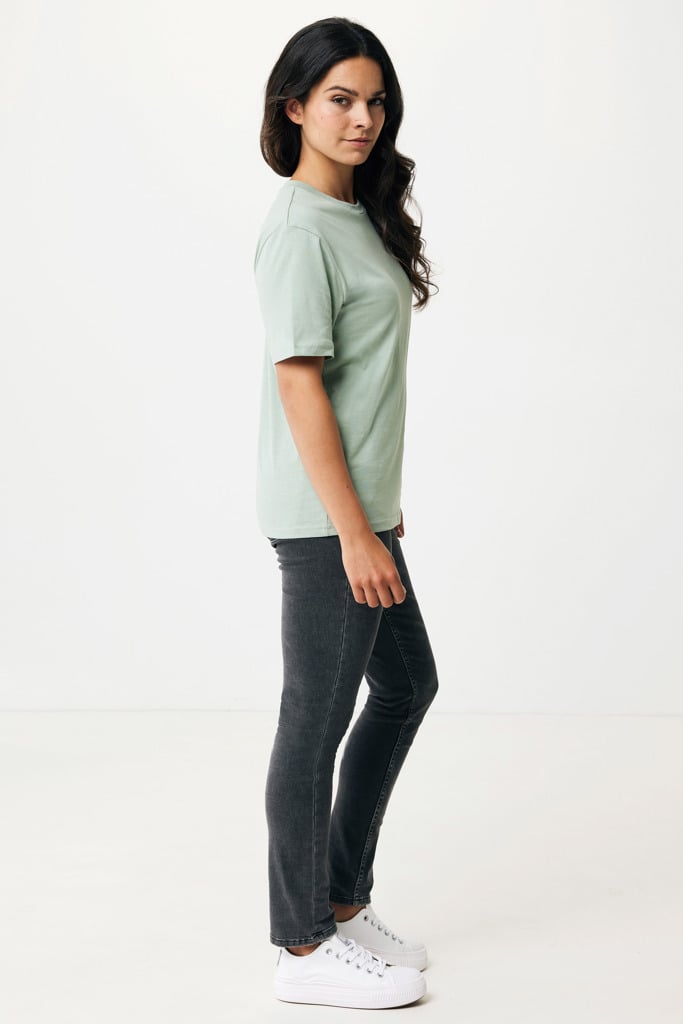 IQONIQ Sierra este un tricou unisex cu croiala moderna, confectionat din 100% bumbac – compus din 70% bumbac organic si 30% bumbac reciclat, cu o greutate usoara de 160 G/M². Fabricat din jerseu single moale si respirabil, ofera confort exceptional si versatilitate pentru purtare zilnica. Designul minimalist, cu decolteu rotund (crew neck) si finisaj 1x1 rib, imbina simplitatea cu eleganta casuala, potrivindu-se oricarui stil, indiferent de sezon. Produsul este certificat AWARE™, garantand trasabilitatea completa a materialelor reciclate si organice prin tehnologie blockchain si tracer fizic. Prin scanarea codului QR, poti accesa pasaportul digital al produsului si informatiile privind impactul sau ecologic. Tricoul este certificat OEKO-TEX® STANDARD 100 Centexbel pentru siguranta si calitate, iar 2% din incasari sunt donate catre Water.org, sustinand proiecte pentru accesul la apa curata la nivel global.