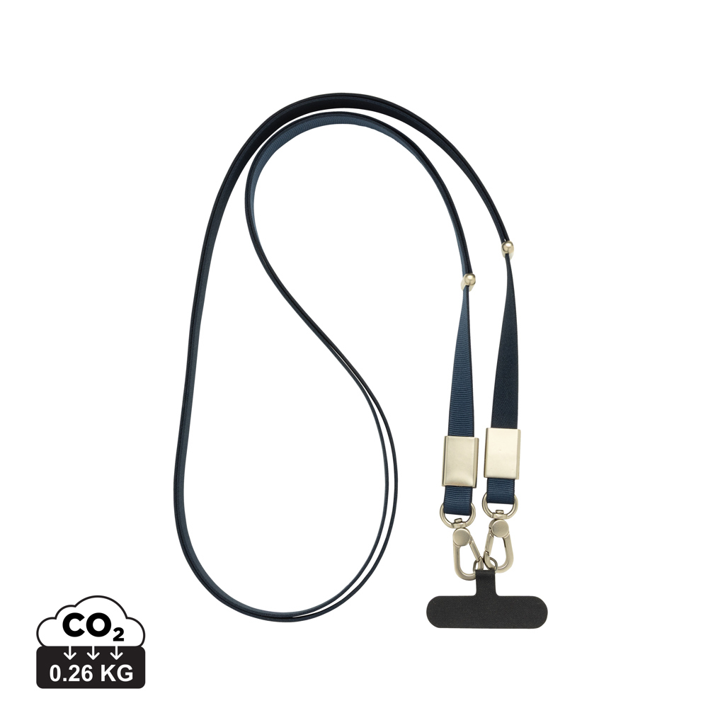 Lanyard universal crossbody pentru telefon realizat din PET reciclat RCS si aluminiu. Reglabil, confortabil si ideal pentru utilizare hands-free in fiecare zi.