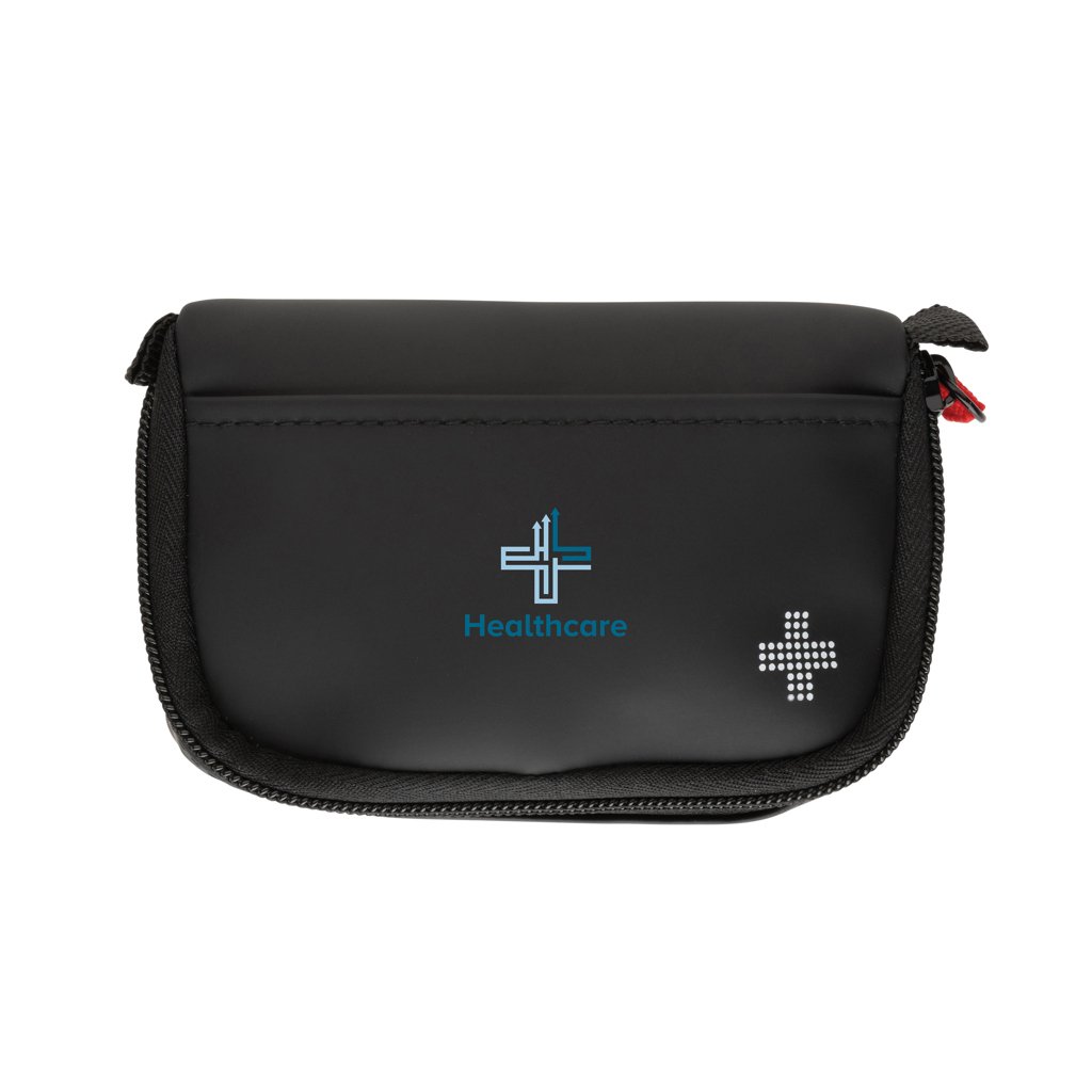 Fii mereu pregatit cu trusa de prim ajutor RCS intr-o husa eleganta din nubuck PU reciclat, rezistenta la apa si usor de curatat. Aceasta trusa premium combina designul sofisticat cu functionalitatea, fiind ideala pentru calatorii, birou sau masina. Materialul nubuck-PU reciclabil are un continut reciclat total de 32%, certificat RCS (Recycled Claim Standard), garantand trasabilitatea completa a materialelor. Continutul include: 1 bandaj triunghiular, 1 bandaj PBT, 4 servetele cu alcool, 1 compresa, 5 plasturi, 1 foarfeca, 2 ace de siguranta si 1 banda adeziva. Toate articolele (cu exceptia acelor si foarfecei) sunt ambalate in pungi de hartie marcate cu toate simbolurile obligatorii (data expirarii, CE, LOT). Conform Medical Device Directives 93/42/EEC si EU 2017/745, EN ISO 13485:2016. O alegere responsabila si practica pentru siguranta ta.