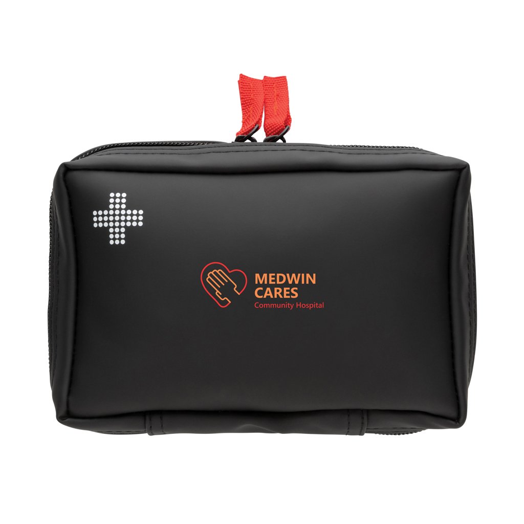 Descopera eleganta si siguranta intr-un singur produs cu trusa de prim ajutor RCS in husa din nubuck PU reciclat. Materialul luxos si hidrofug este usor de curatat si ofera o protectie excelenta impotriva umezelii – perfecta pentru calatorii, birou sau masina. Trusa contine tot ce ai nevoie pentru situatii de urgenta: 1 bandaj PBT, 1 bandaj PBT cu compresa, 1 bandaj triunghiular, 1 masca de resuscitare Safe Kiss, 1 pereche de manusi, 1 banda adeziva, 3 ace de siguranta, 1 foarfeca, 10 plasturi si 4 servetele cu alcool. Toate articolele (cu exceptia foarfecei si acelor) sunt ambalate in pungi de hartie marcate cu simbolurile obligatorii: data expirarii, CE, LOT. Continutul respecta Medical Device Directives 93/42/EEC si EU 2017/745, EN ISO 13485:2016. Realizata din materiale reciclate in proportie de 24%, cu certificare RCS (Recycled Claim Standard) pentru trasabilitate completa.