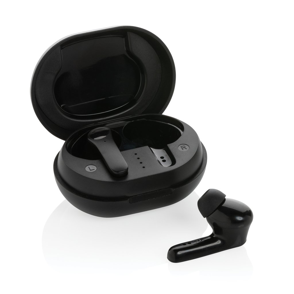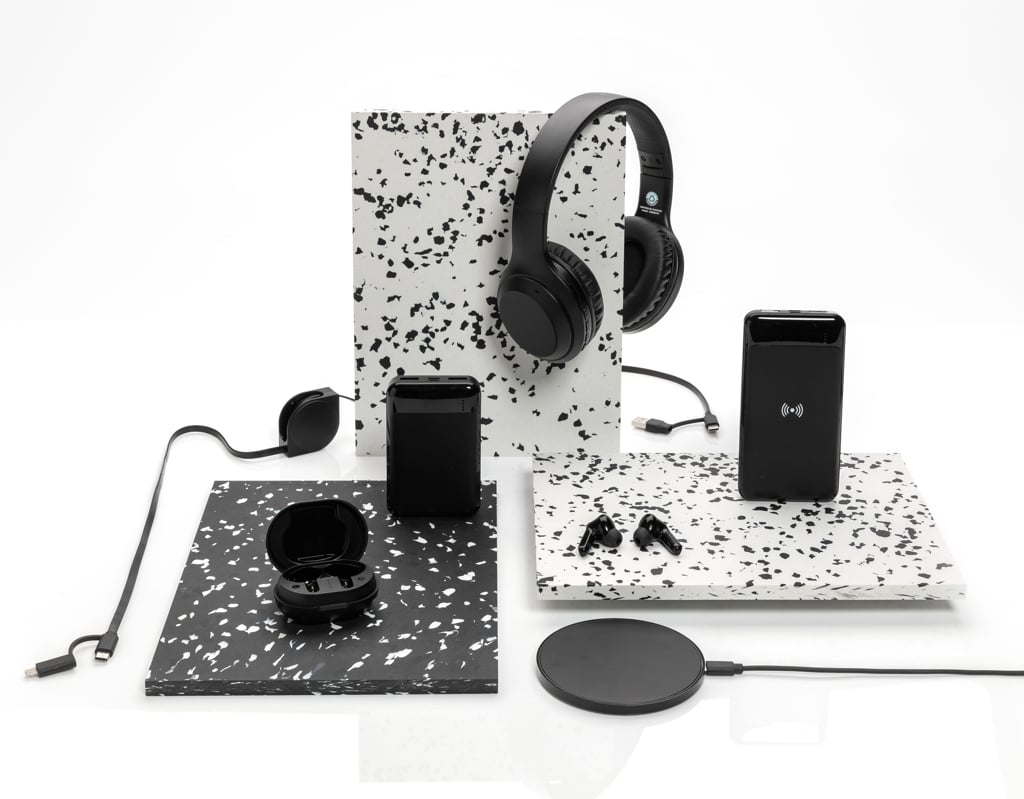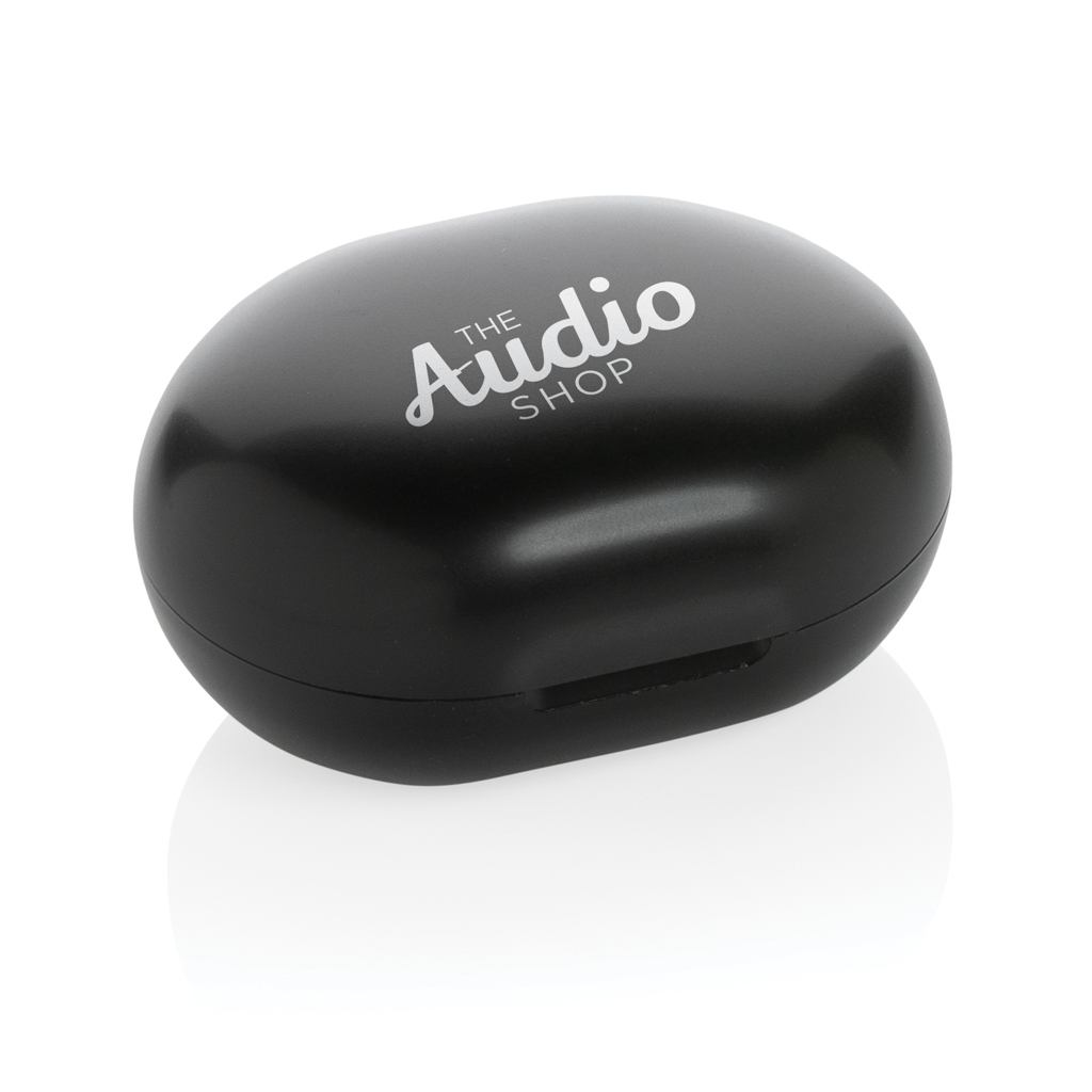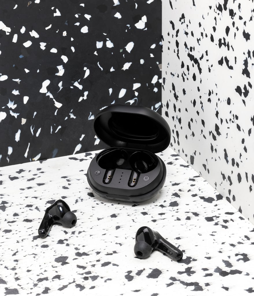 Asculta muzica preferata in stil sustenabil cu castile wireless TWS din plastic reciclat RCS. Atat castile, cat si cutia de incarcare sunt realizate din ABS reciclat certificat RCS, care garanteaza trasabilitatea materialelor reciclate pe intreg lantul de productie. Cu albastrutooth 5.0, conexiunea este stabila si fluida pana la 10 metri. Bateria de 40 mAh ofera pana la 4 ore de redare, iar cutia de incarcare de 300 mAh permite reincarcarea completa in 1.5–2 ore prin USB-C. Include microfon integrat, control tactil si functie pick-up pentru apeluri hands-free. Pachetul contine 3 marimi de pernite din silicon si cablu de incarcare TPE reciclat PVC free.