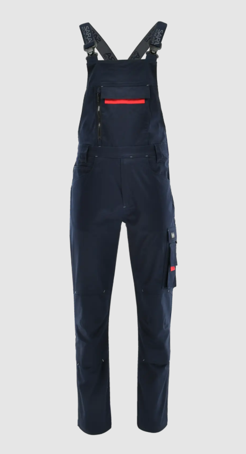 Caracteristici cheie: Tesatura elastica cu stretch, bretele reglabile, buzunar dublu la piept, doua buzunare frontale adanci, buzunar pentru rigla, buzunar lateral multifunctional, buzunar pentru telefon, buzunare la genun