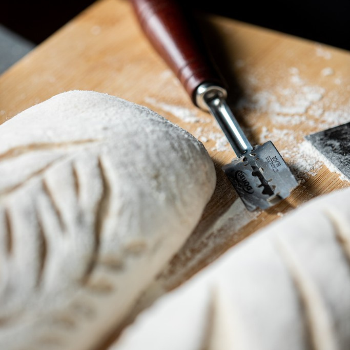 Un cutit de crestat aluat care ii ofera aluatului o directie de crestere si un aspect vizual deosebit.
