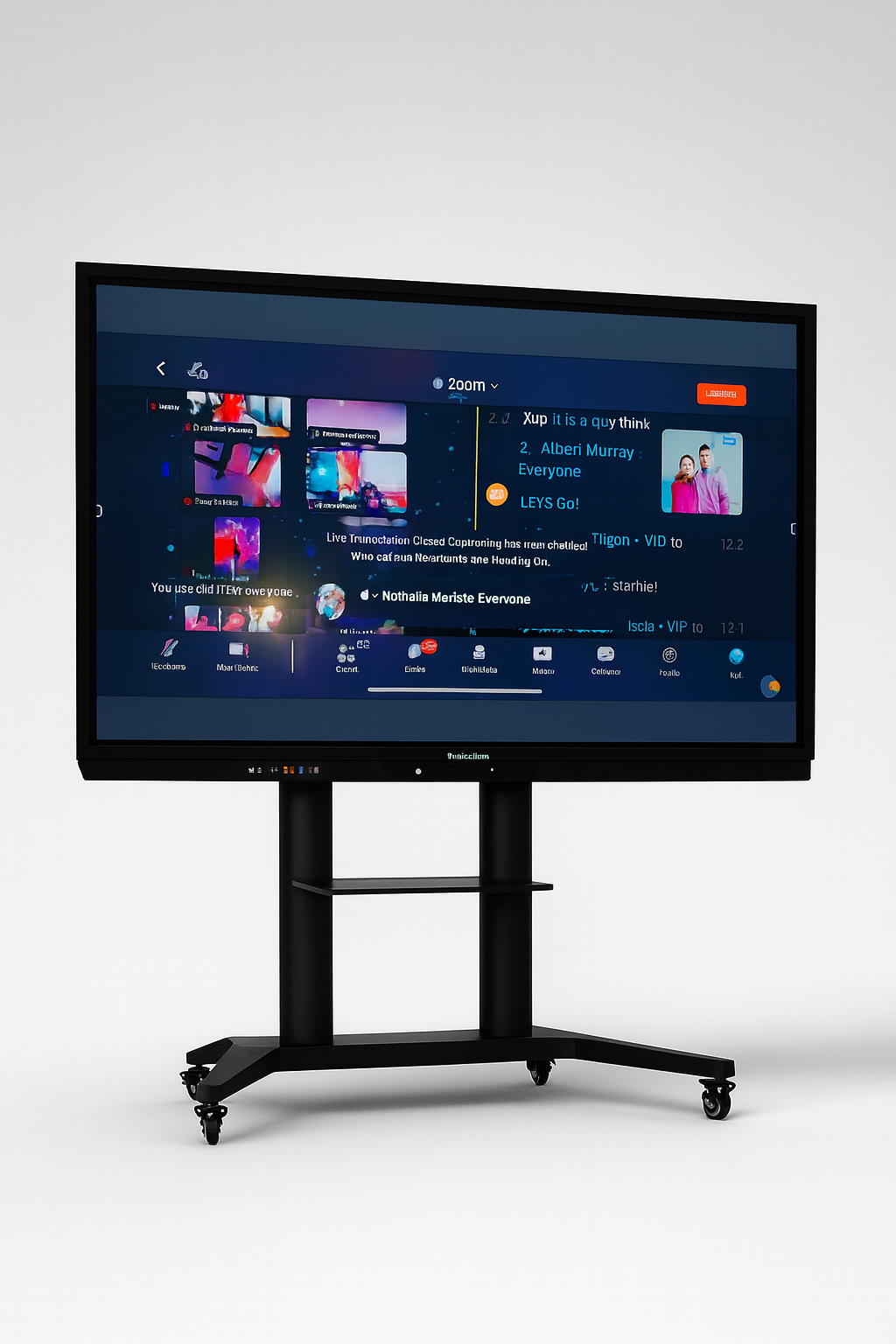 Ecranul interactiv este echipat cu un display 4K Ultra HD (3840x2160), iluminare LED directa si sticla securizata anti-reflexie (duritate 9H), oferind o imagine clara si un contrast excelent chiar si in sali luminoase. Este ideal pentru clase mari, sali de conferinta sau traininguri corporate unde vizibilitatea si interactivitatea conteaza.