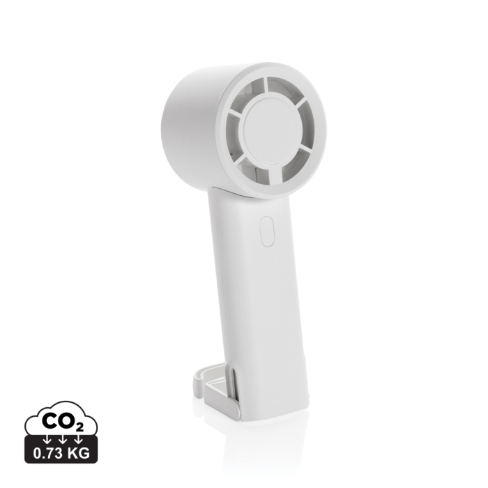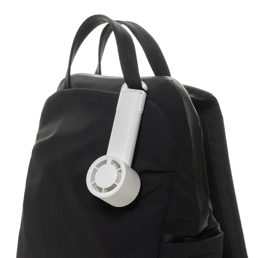 Ventilator portabil reincarcabil Twist din plastic reciclat certificat RCS, cu 3 viteze, baterie Li-ion 1200 mAh si carlig extensibil pentru utilizare flexibila.