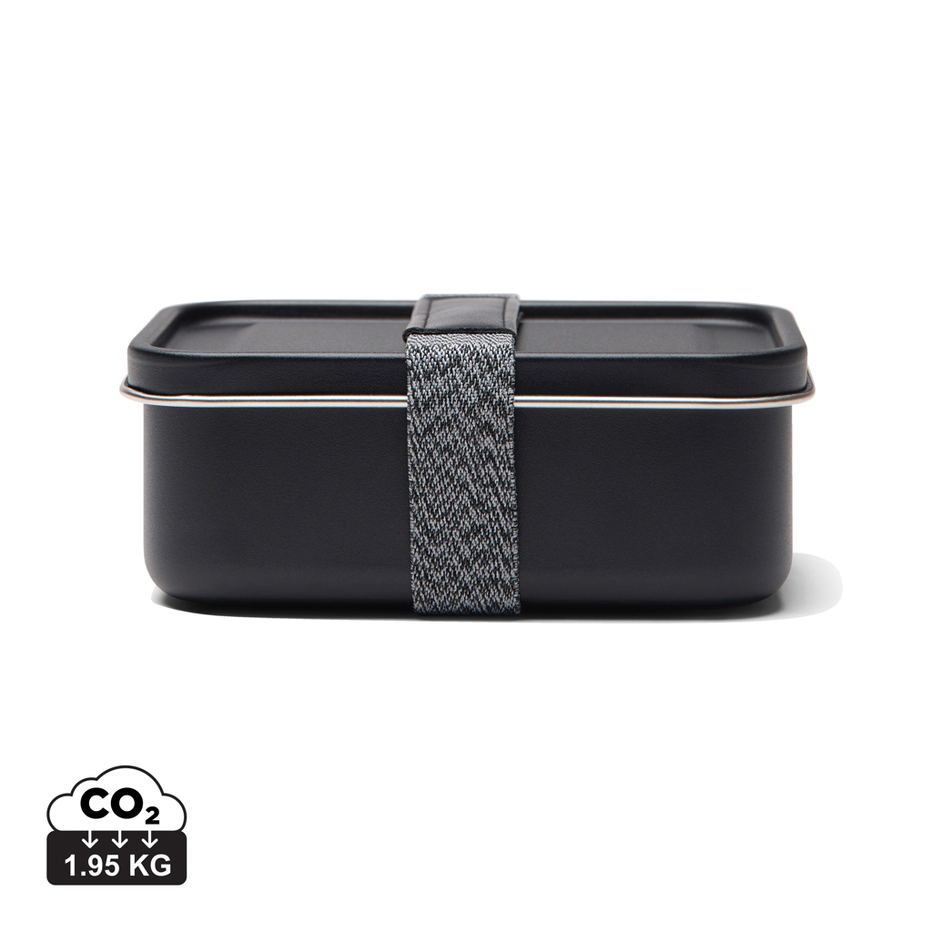 Caserola de pranz VINGA Parks de 750 ml din otel inoxidabil reciclat certificat RCS, cu banda elastica pentru fixarea capacului, durabila si reutilizabila.