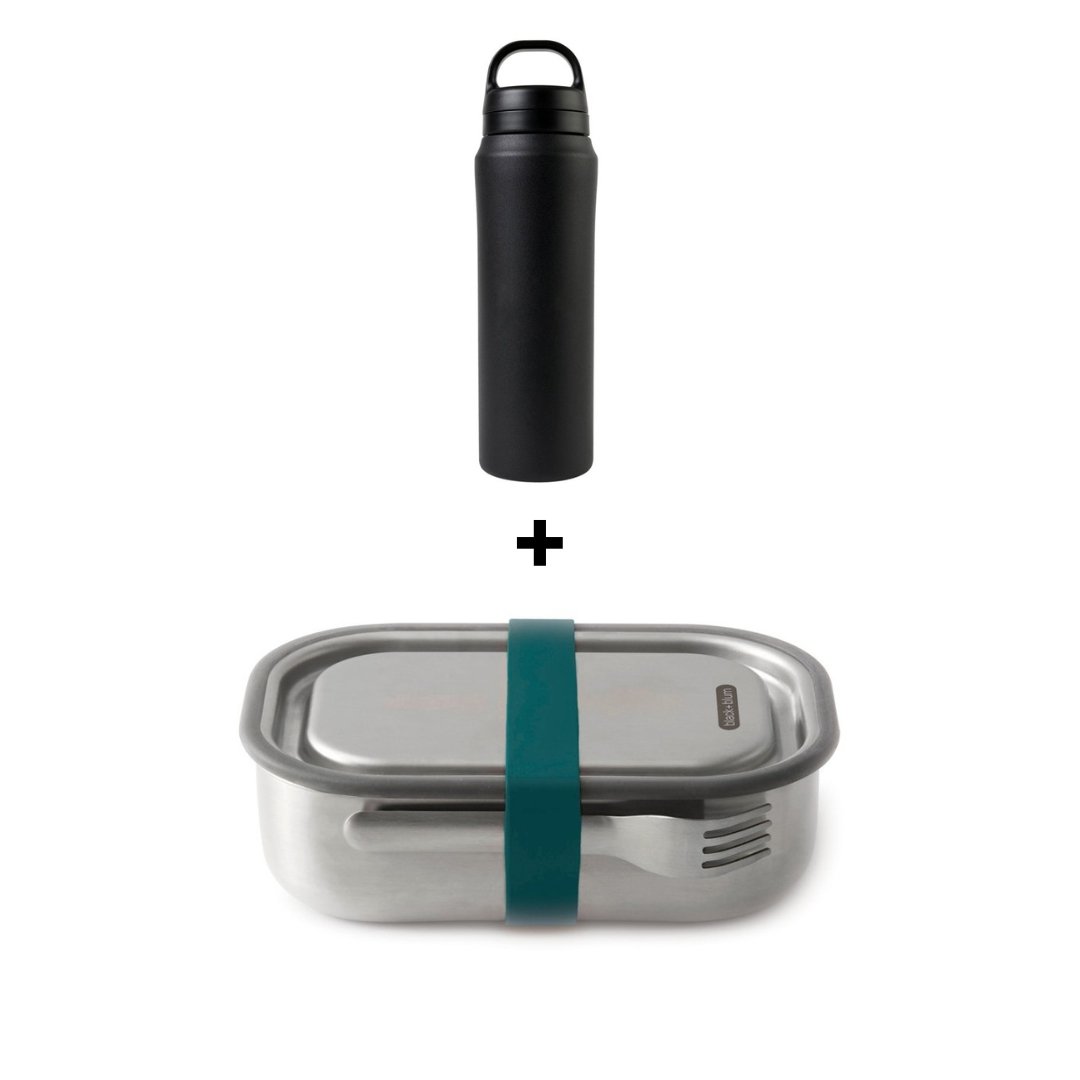 Pachet Cadou Lunch To Go Caserola mare turcoaz din inox + Sticla termoizolanta Rowan Negru