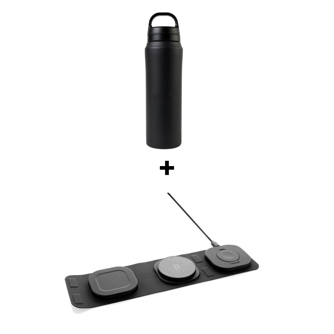 Pachet Cadou Winter Desk Tech Sticla termoizolanta Neagra + Incarcator wireless 3-in-1 pliabil