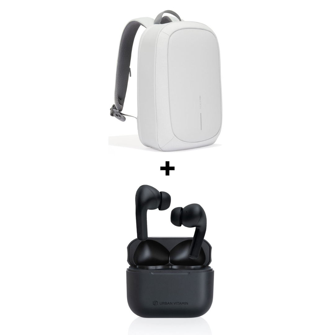 Pachet Cadou Work From Anywhere Rucsac Bobby Gri Deschis + Casti Wireless Negre Alamo ANC
