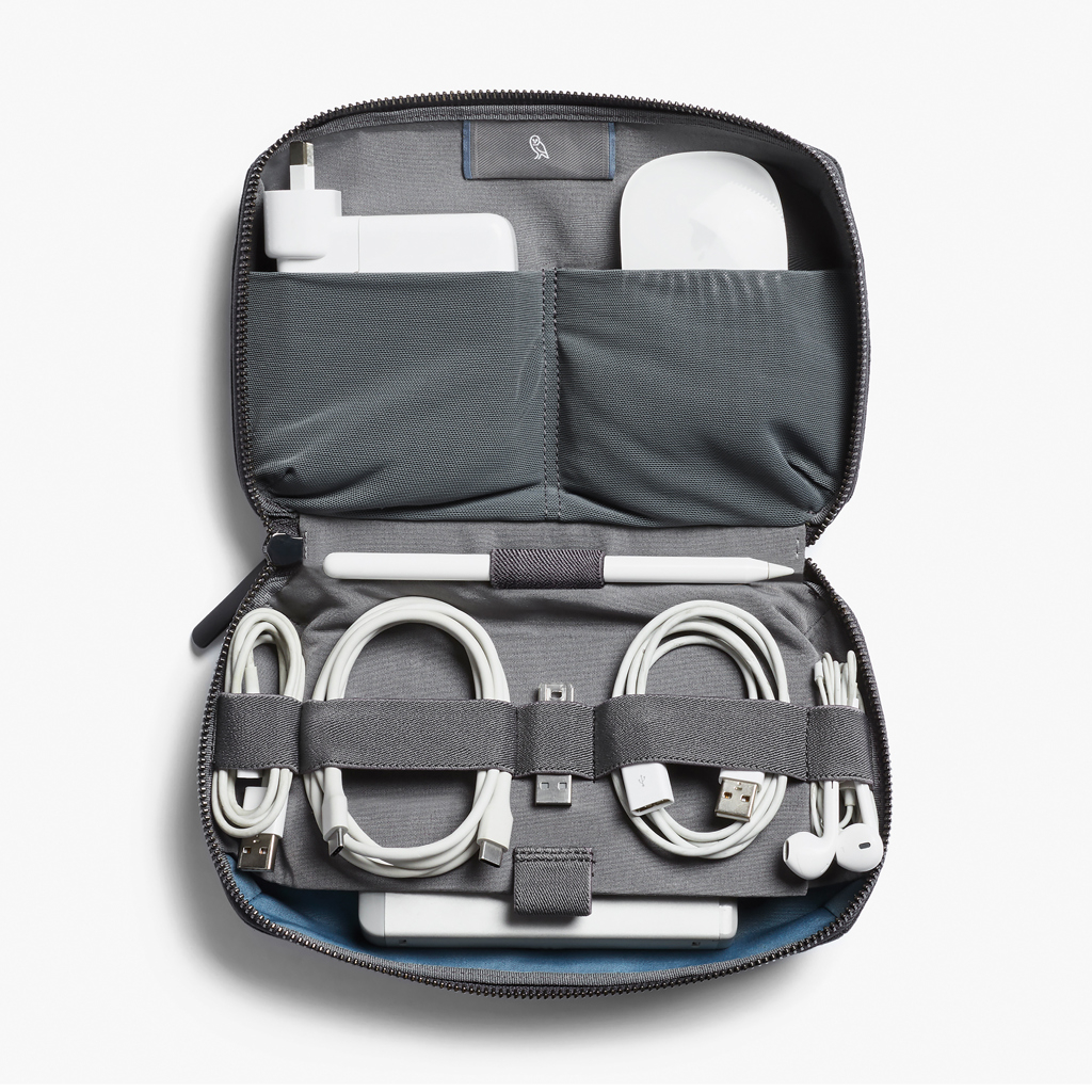 Spune adio cablurilor incurcate si dezordinii cu Bellroy Tech Kit, un organizator premium creat pentru a pastra toate accesoriile tale tehnologice intr-un singur loc, bine aranjate si protejate. Cu un design generos si inteligent compartimentat, este optimizat pentru accesorii mai mari, precum incarcatoare, adaptoare sau hard diskuri externe, dar si pentru cabluri si gadgeturi mici. Se deschide complet, tip carte, pentru a-ti oferi acces rapid si vizibilitate deplina asupra continutului. Dispune de buzunar magnetic dedicat pentru power bank, buzunare elastice din plasa pentru obiectele mici si un perete interior flotant cu sistem elastic pentru organizarea cablurilor. Elegant, practic si durabil, Bellroy Tech Kit este companionul ideal pentru birou, calatorii sau viata de zi cu zi, imbinand perfect stilul minimalist cu functionalitatea premium.