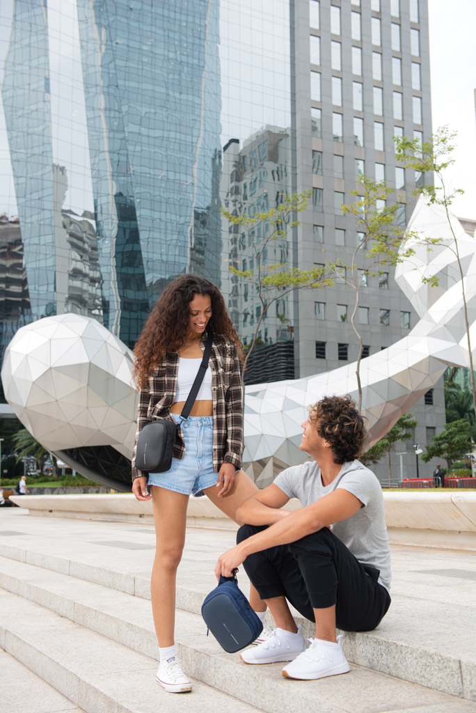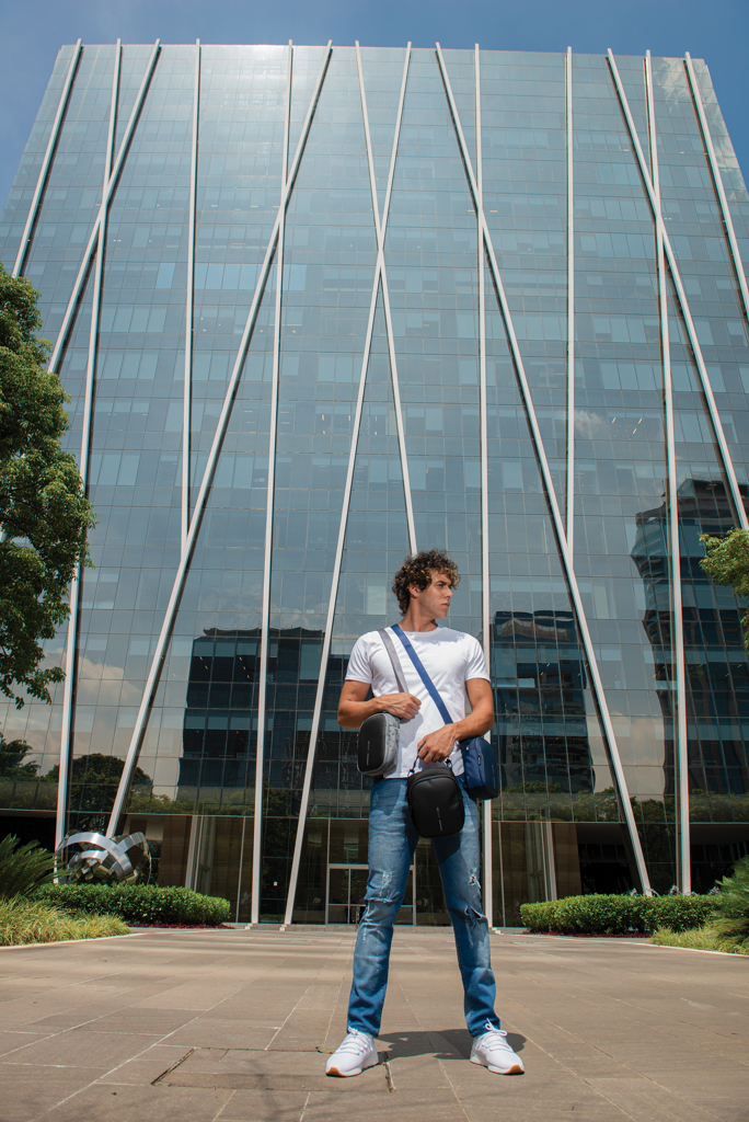 Boxy Sling este geanta crossbody multifunctionala, perfecta pentru a transporta obiectele esentiale in fiecare zi intr-un mod sigur si confortabil. Cu un volum de 2,3L, are dimensiunea ideala pentru a purta telefonul mobil, portofelul, pasaportul, carnetelul si alte accesorii de mici dimensiuni. Versatilitatea este cheia: o poti purta in jurul gatului, pe umar sau ca bum bag in jurul taliei, adaptandu-se cu usurinta stilului tau de viata.