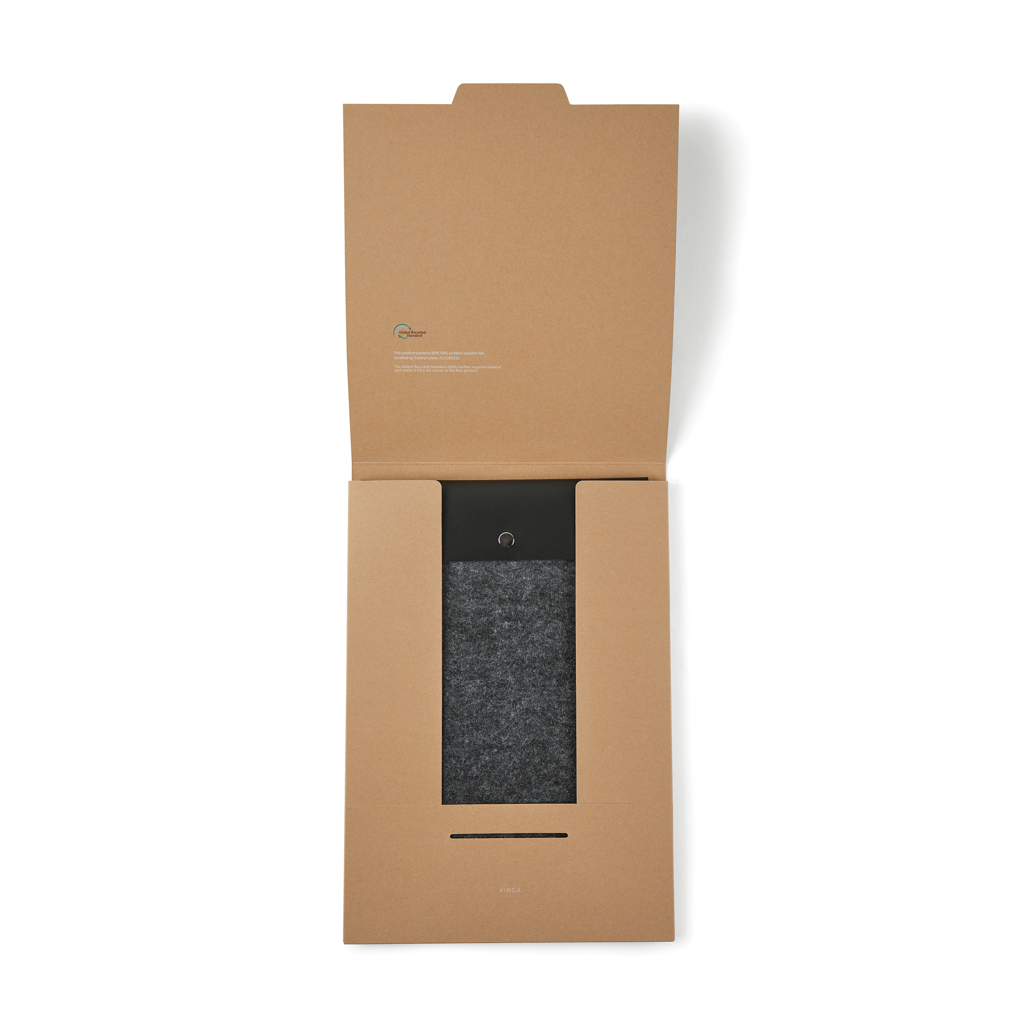 Protejeaza-ti laptopul cu husa VINGA Albon GRS, realizata din fetru reciclat certificat GRS (82%) cu efect melanj, ce imbina eleganta minimalista cu functionalitatea practica. Conceputa pentru a proteja dispozitivele de socuri si umezeala, aceasta husa este ideala pentru laptopuri de pana la 15". Clapa din PU adauga un plus de rafinament si permite un acces rapid si sigur la interior. Dimensiunile interioare de 34x2,5x24 cm asigura compatibilitatea cu majoritatea laptopurilor de 15" (te rugam sa notezi ca dimensiunile afisajului pot varia fata de dimensiunile intregului computer). Certificarea GRS (Global Recycled Standard) garanteaza un lant de productie complet transparent si sustenabil, confirmand alegerea ta eco-friendly.
