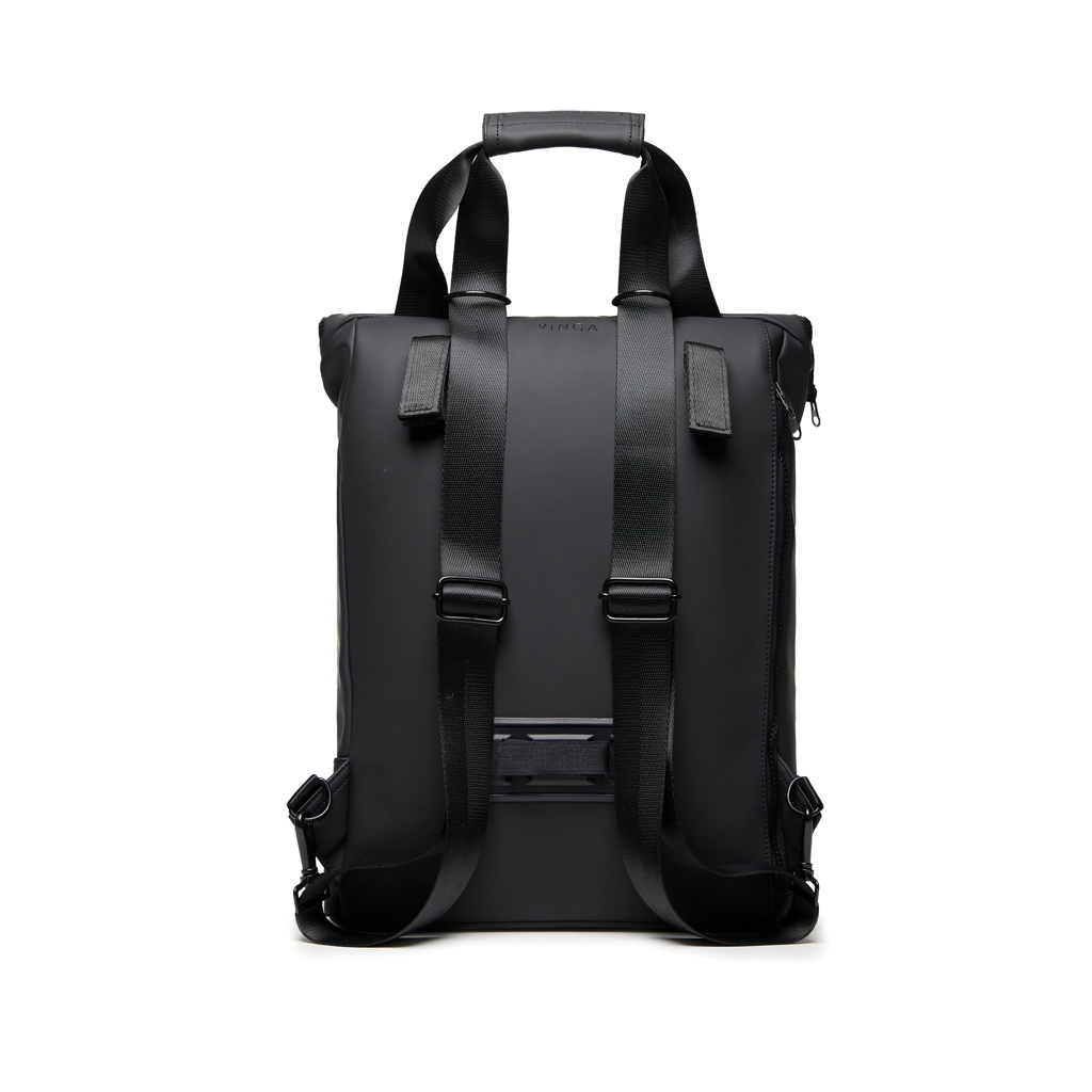 Experimenteaza libertatea deplasarilor zilnice cu geanta pentru bicicleta VINGA Baltimore, un accesoriu chic si contemporan, care imbina perfect stilul cu functionalitatea. Realizata din PU suplu si rezistent la apa, aceasta geanta versatila poate fi purtata atat ca rucsac, cat si ca geanta tote, adaptandu-se nevoilor tale. In timpul navetei, o poti fixa direct pe cadrul bicicletei, iar pentru pauzele de pranz sau intalnirile in oras, o poti purta elegant pe brat. Dispune de un compartiment captusit pentru laptopuri de pana la 16", compatibila si cu modele de pana la 17" (in functie de dimensiuni), oferind siguranta si organizare impecabila. Inchiderea cu fermoare premium si designul minimalist fac din aceasta geanta companionul perfect pentru naveta urbana sau calatoriile de zi cu zi.