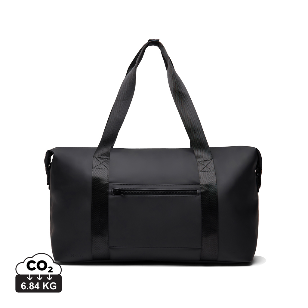 Calatoreste organizat si elegant cu geanta de weekend VINGA Baltimore RCS, realizata din 20% poliester reciclat certificat RCS si finisaj PU cu aspect premium. Cu o capacitate de 34L, aceasta geanta este perfecta pentru escapade de 1-2 nopti, fie ca pleci intr-un city break, fie intr-o calatorie de afaceri. Designul inteligent include un buzunar 2-in-1 care se transforma intr-un sistem de prindere pe troler, oferindu-ti libertate de miscare in calatorii. In interior, un buzunar cu fermoar iti pastreaza obiectele esentiale in siguranta, iar la exterior gasesti spatiu suplimentar pentru acces rapid. Bretelele confortabile pentru mana si cureaua de umar detasabila si ajustabila adauga versatilitate si comoditate. Compacta, rezistenta la apa si prietenoasa cu mediul, Baltimore este companionul ideal pentru calatorii scurte.