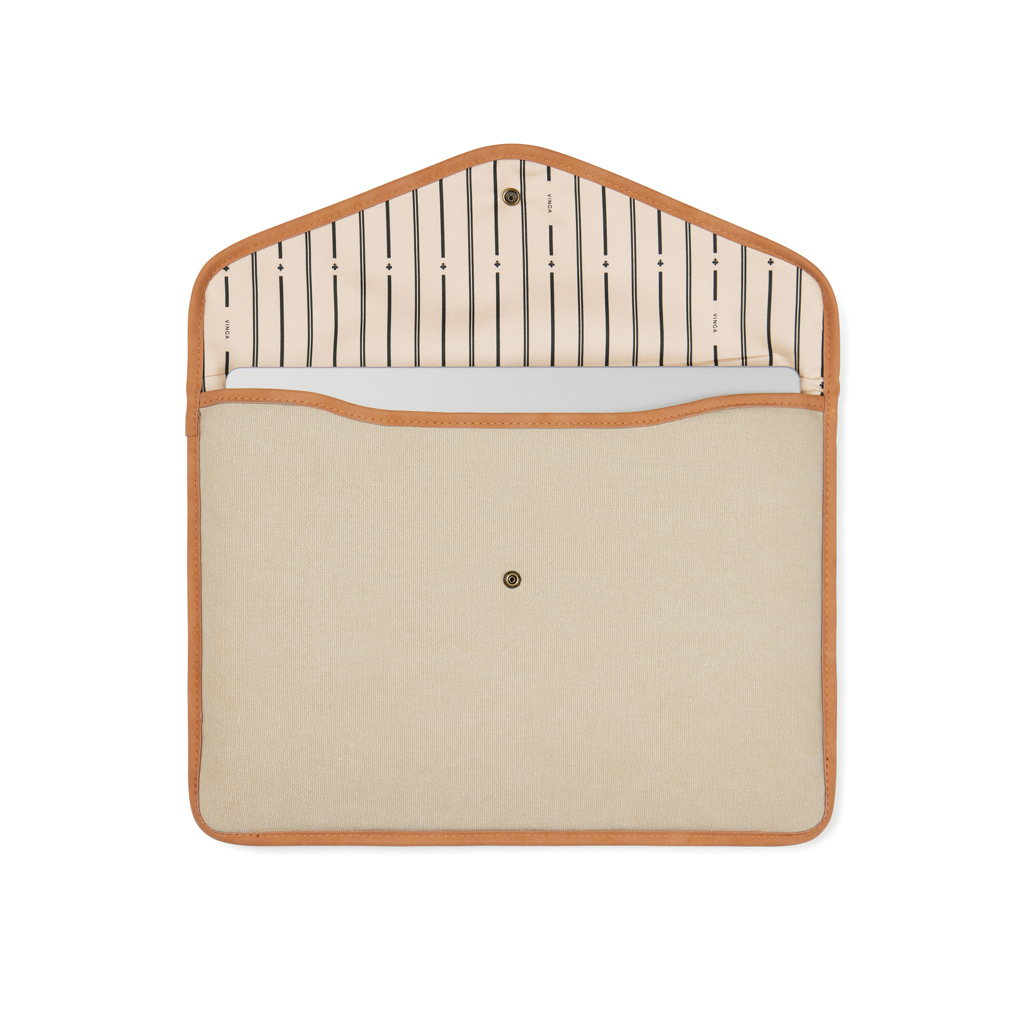 Protejeaza-ti laptopul cu husa VINGA Bosler GRS, un accesoriu clasic si elegant, conceput pentru siguranta si stil. Aceasta husa este realizata din panza reciclata certificata GRS (37% bumbac reciclat si 25% poliester reciclat), cu detalii din PU de calitate, care adauga un plus de rafinament. Interiorul este captusit cu spuma pentru a asigura protectia laptopului tau de pana la 14", prevenind zgarieturile si socurile usoare. Inchiderea cu capsa metalica ofera siguranta si acces rapid, facand din aceasta husa o alegere practica atat pentru birou, cat si pentru calatorii. Certificarea GRS (Global Recycled Standard) garanteaza trasabilitatea intregului lant de productie, confirmand utilizarea materialelor reciclate intr-un mod responsabil.