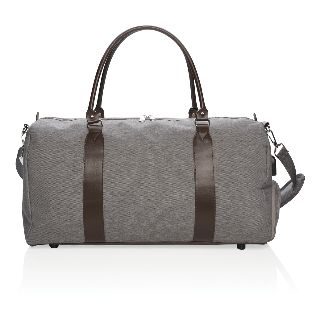 Weekend Bag cu USB A este alegerea perfecta pentru escapade de weekend, sala sau calatorii scurte, combinand designul minimalist modern cu functionalitatea inteligenta. Fabricata din poliester 600D de inalta calitate, aceasta geanta este rezistenta si complet fara PVC, oferind siguranta si durabilitate in utilizarea zilnica. Cu un volum de 20L, ai suficient spatiu pentru haine, echipamente sportive si accesorii personale.