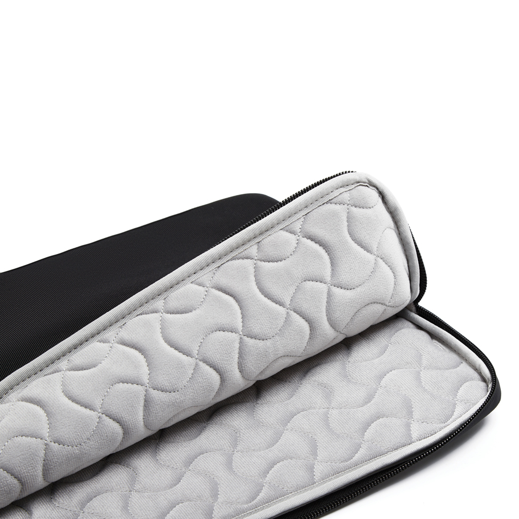 Interiorul este captusit cu un fleece texturat, care ofera o protectie delicata si previne zgarieturile, mentinand laptopul in conditii impecabile. In plus, fermoarul impermeabil asigura protectie sporita impotriva umezelii si a factorilor externi, fiind ideal pentru naveta zilnica, scoala sau calatorii scurte.