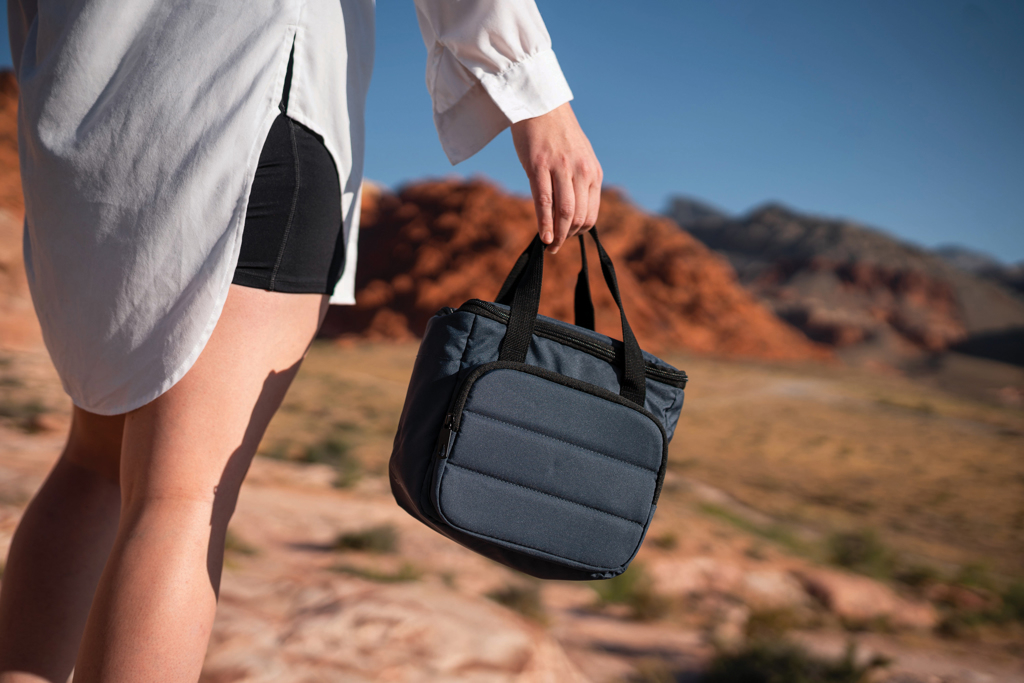 Geanta are compartiment principal termoizolant din PEVA usor de curatat, cu spatiu pentru pana la 9 doze, si un buzunar frontal cu fermoar pentru accesorii. Produsul este PVC free, iar 2% din incasari sunt donate catre Water.org, sustinand accesul la apa curata.