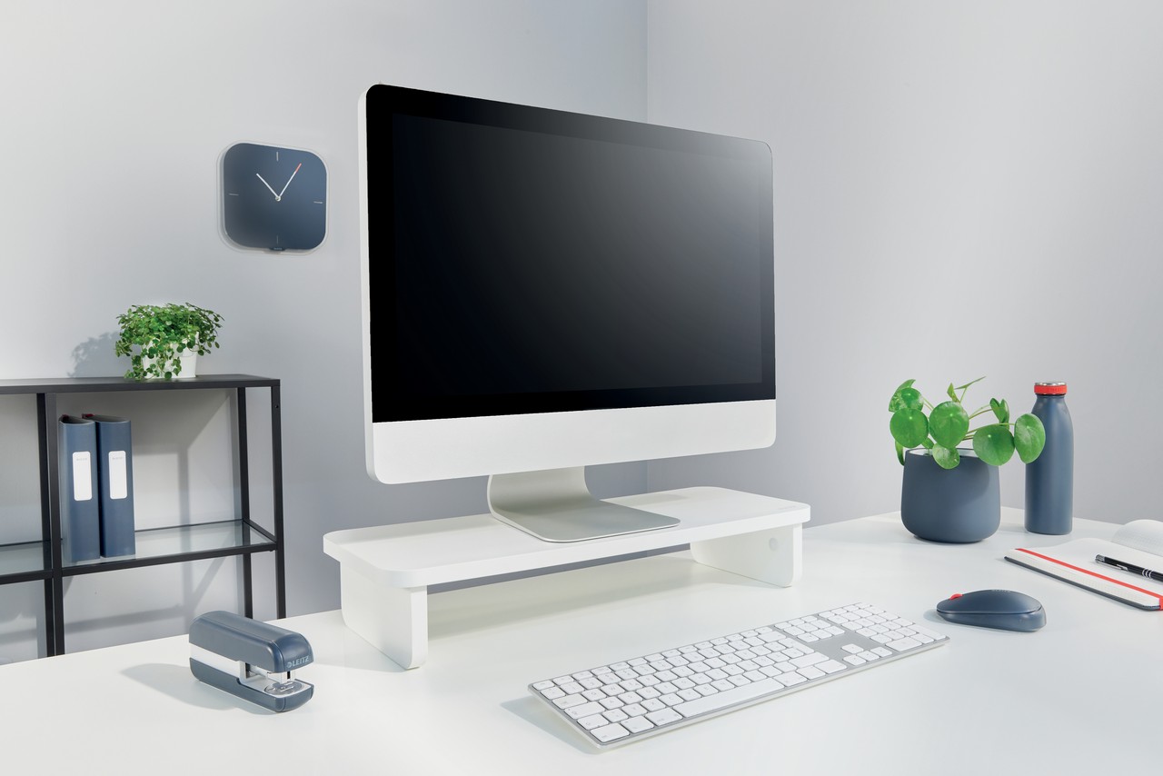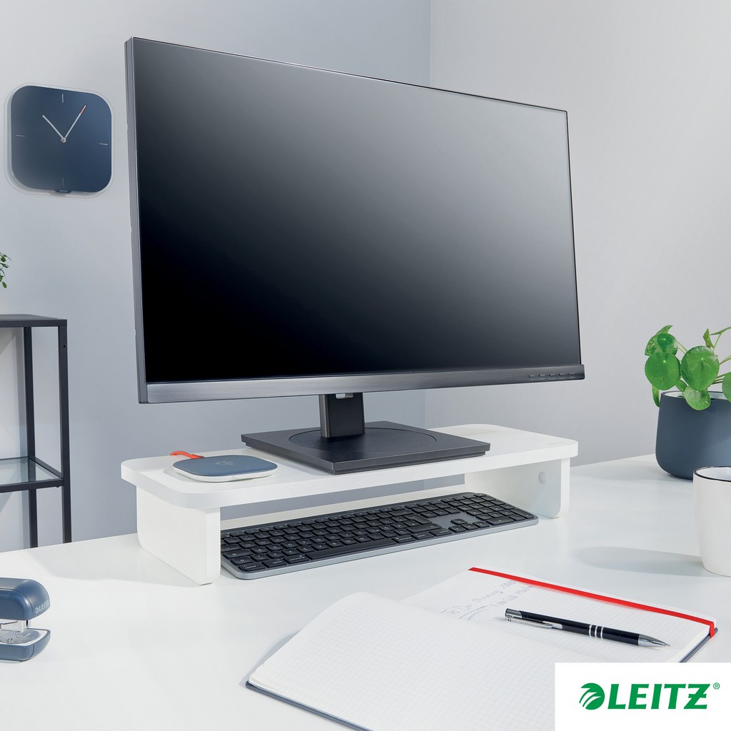Suportul pentru monitor Leitz Ergo ridica ecranul monitorului pentru a creste confortul de vizionare si pentru a ajuta la imbunatatirea posturii. De asemenea, utilizarea unui suport pentru monitor va va mentine biroul organizat si fara dezordine, oferind spatiu de depozitare pentru tastatura si alte lucruri esentiale de zi cu zi. Cu un design minimalist si un finisaj mat, acest suport elegant pentru monitor va imbunatati sanatatea si bunastarea prin crearea fara efort a unui cadru de lucru activ perfect. Combinati-l cu alte produse Leitz Ergo pentru un spatiu de lucru atractiv si flexibil, care va mentine in miscare toata ziua.