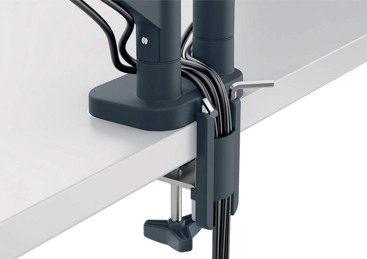 Suport pentru monitor Leitz Ergo, 2 brate ajustabile si extensibile, cu fixare pe birou, gri-carbune